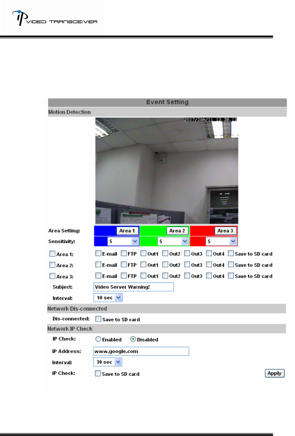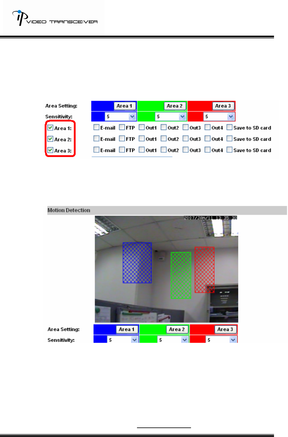 HVT-01HTW supports 3 motion detection areas. When the motion is