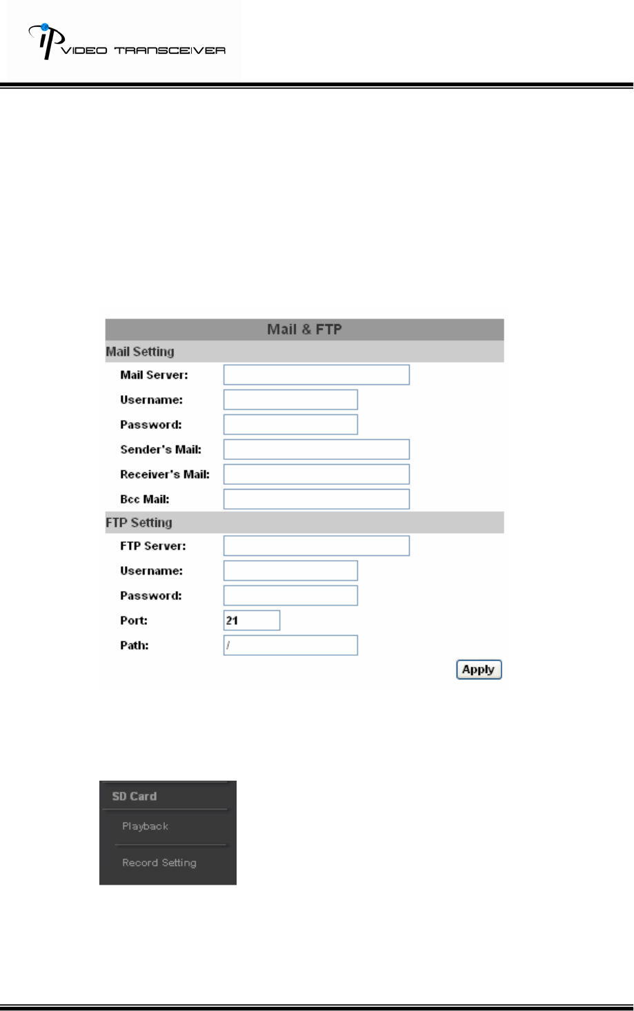 the video to FTP. If the user has a SD card, they can do SD card backup.