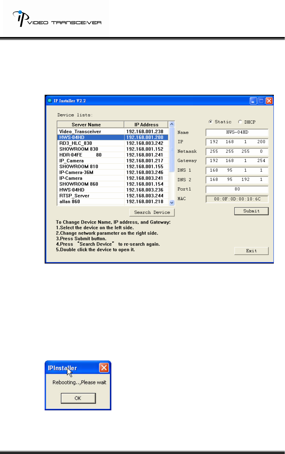 The user can use HVT-01HTW to connect any IP camera via IE browser within