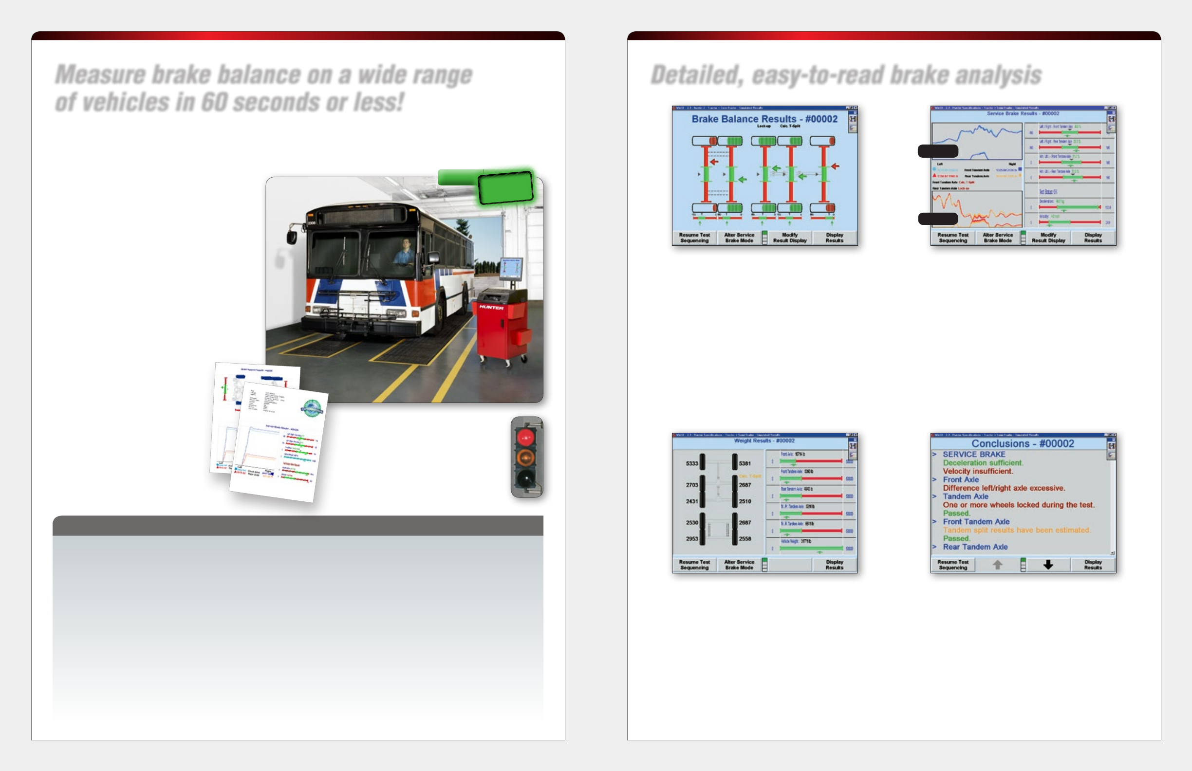 The Hunter B400T accurately measures all braking forces on multi-axle vehicles such as tandem-axle tractors,