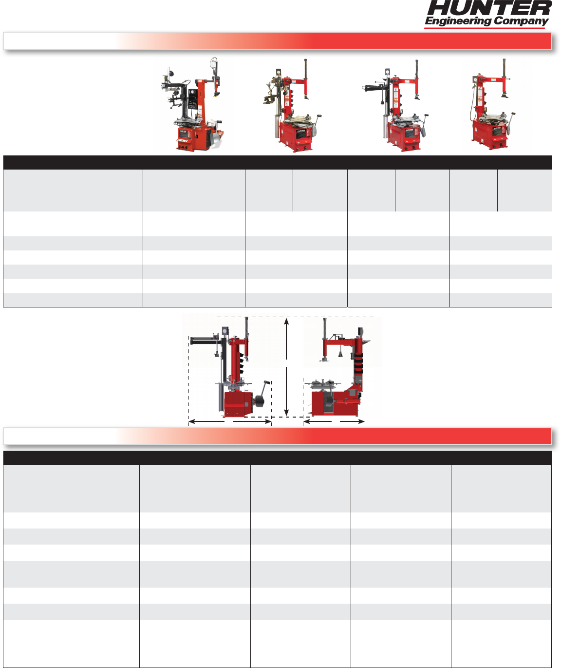 Hunter Engineering Table Top Specification Sheet New TCX Series Tire Changer Spec