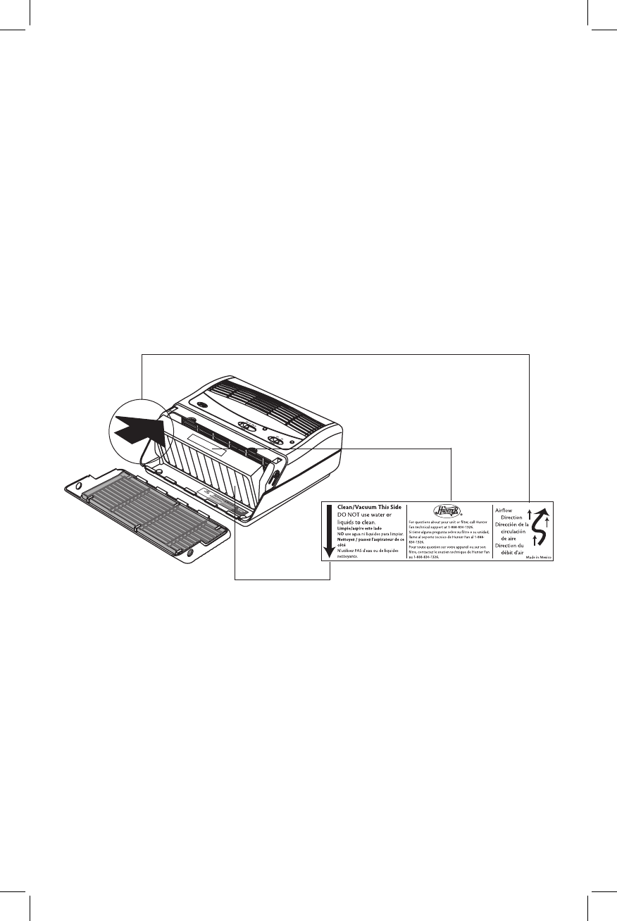 4. The label on the top side of the lter points to the side that should be cleaned.