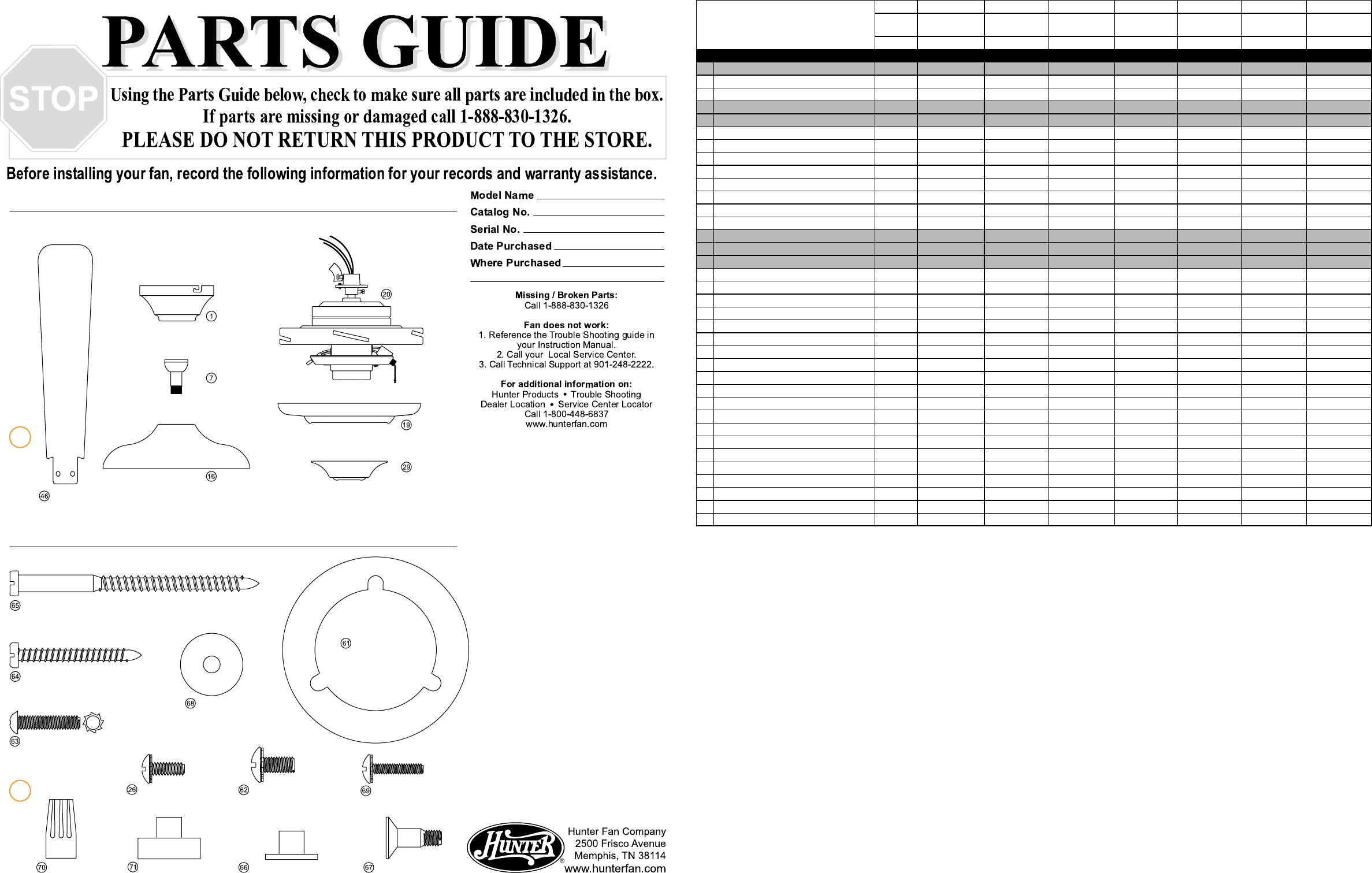 Hunter Fan Parts 25860 Users Manual Pg