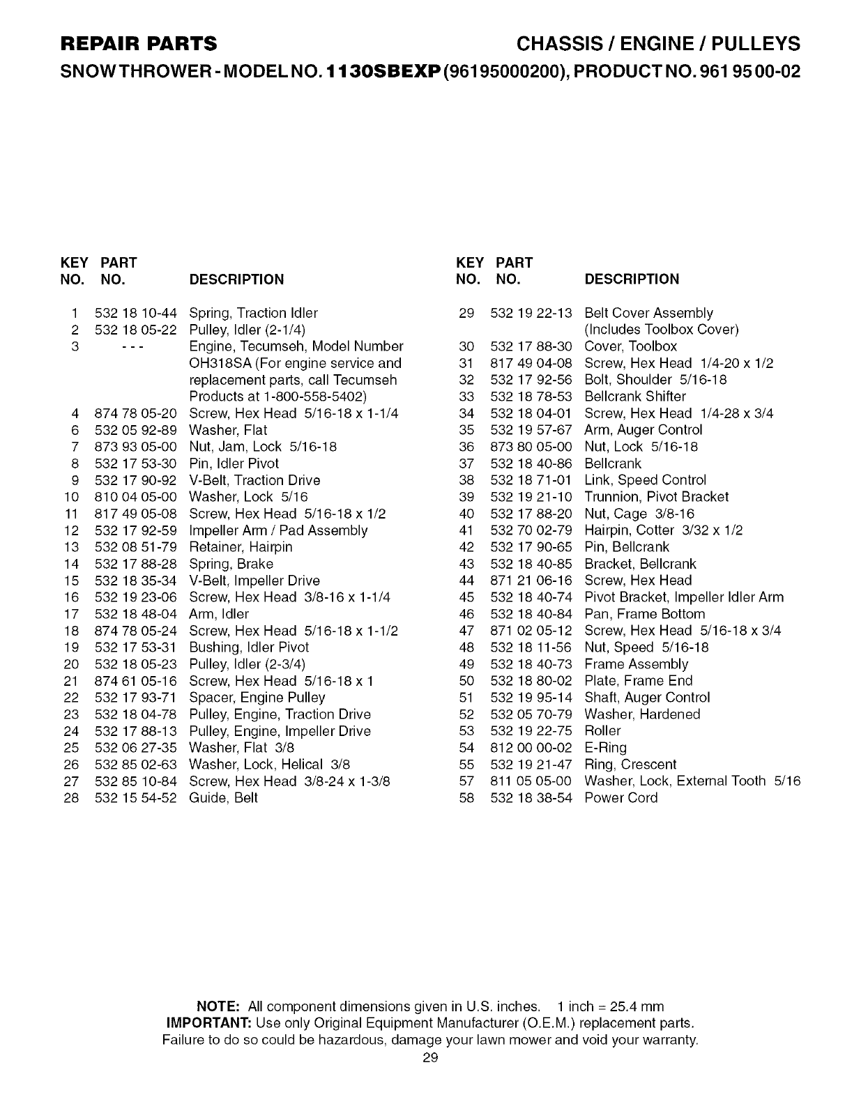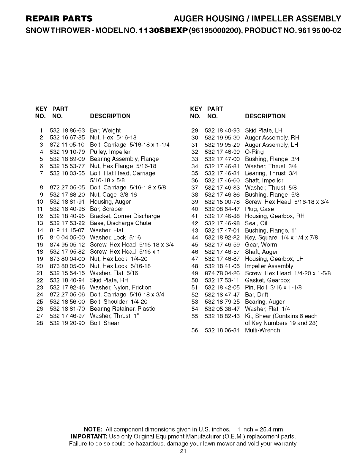 Husqvarna 1130SBEXP User Manual SNOWTHROWER Manuals And Guides L0530584