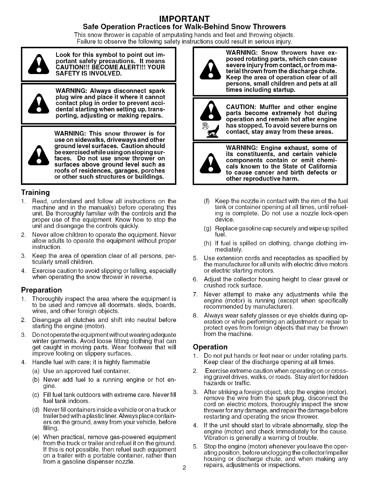 Safe Operation Practices for Walk-Behind Snow Throwers
