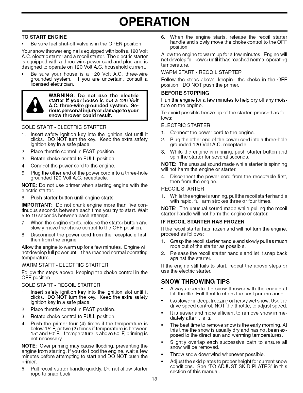 WARNING: This snow thrower is for