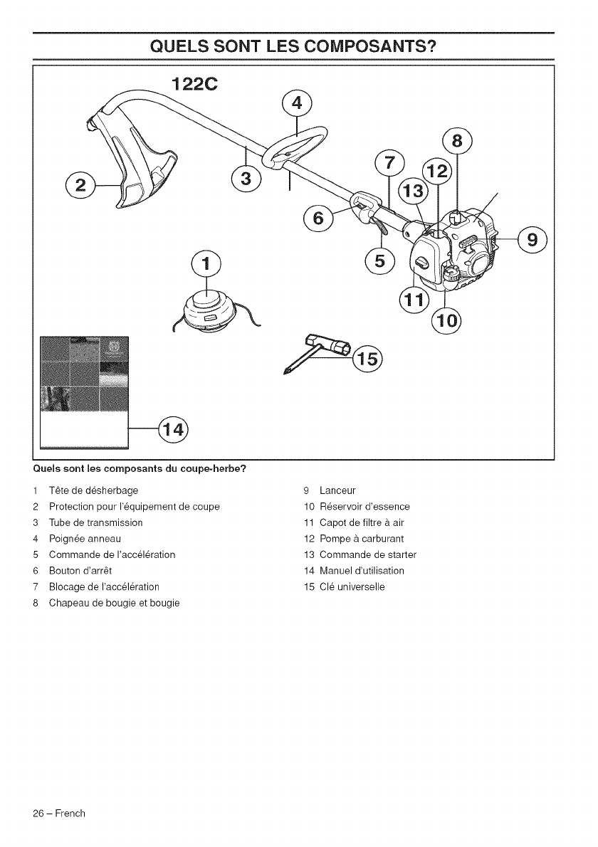 User Manual: Husqvarna 122C 122C HUSQVARNA TRIMMER - Manuals and Guides View the owners manual for your HUSQVARNA TRIMMER #122C. Home:Lawn & Garden Parts:Husqvarna Parts:Husqvarna TRIMMER Manual