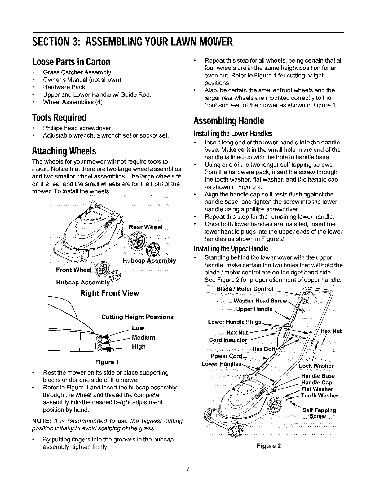 Assembling Your Lawn Mower .......................................................................... 7