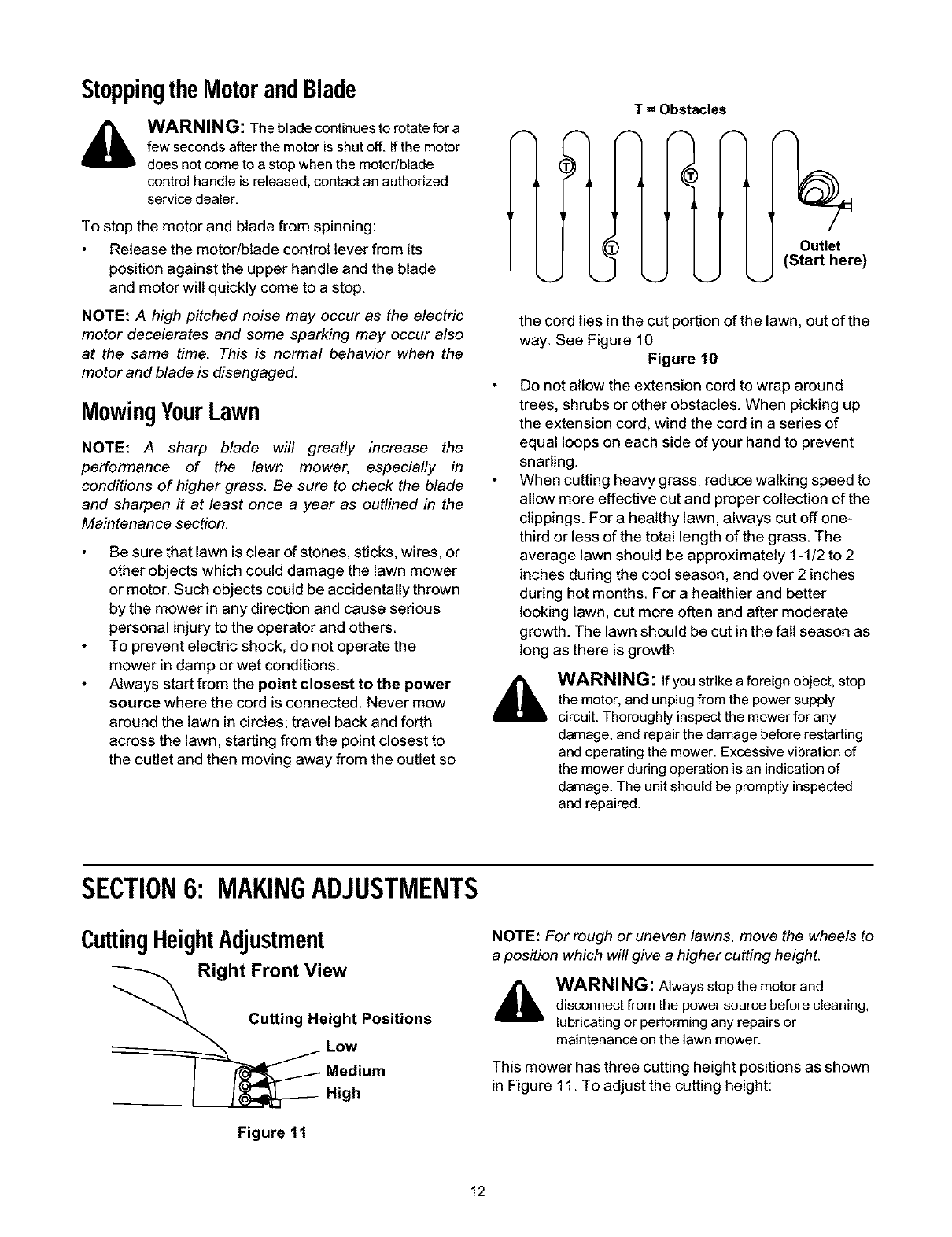 Operating Your Lawn Mower ............................................................................. 11