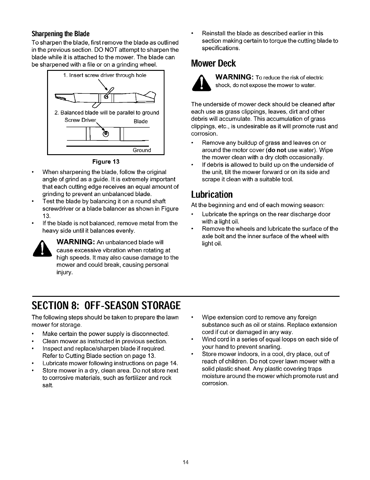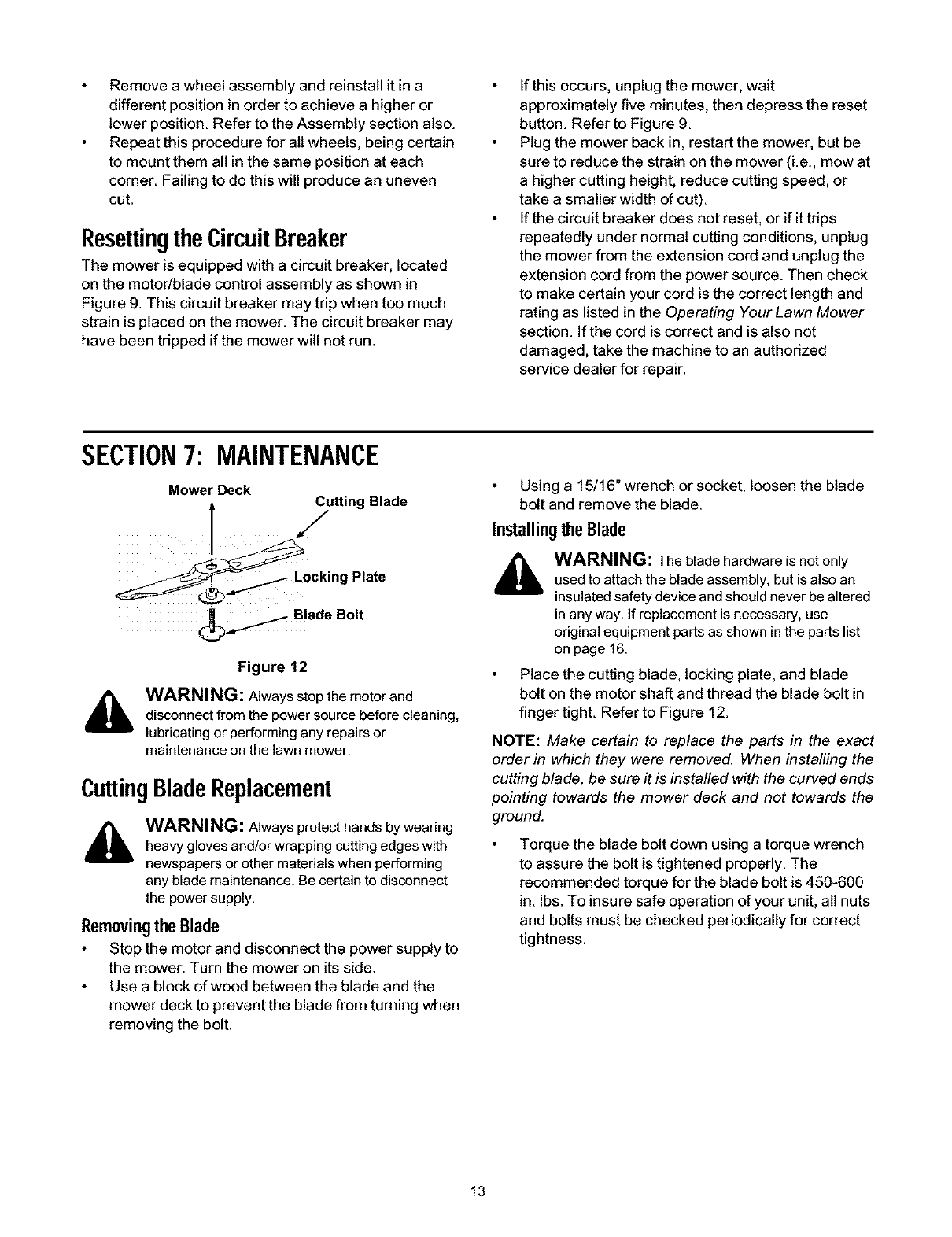 Maintaining Your Lawn Mower .......................................................................... 13