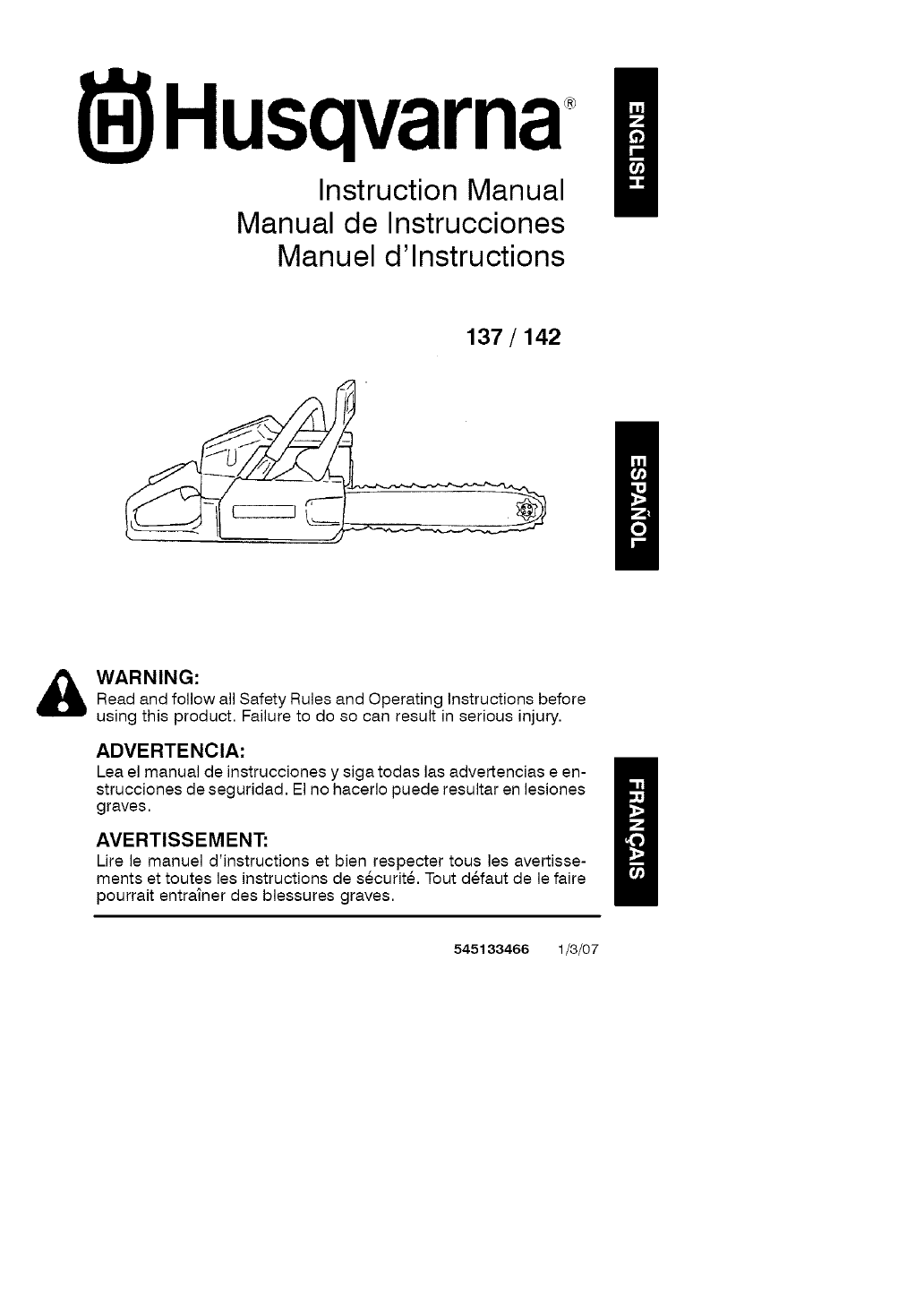 User Manual: Husqvarna 142 142 HUSQVARNA CHAIN SAW - Manuals and Guides View the owners manual for your HUSQVARNA CHAIN SAW #142. Home:Lawn & Garden Parts:Husqvarna Parts:Husqvarna CHAIN SAW Manual