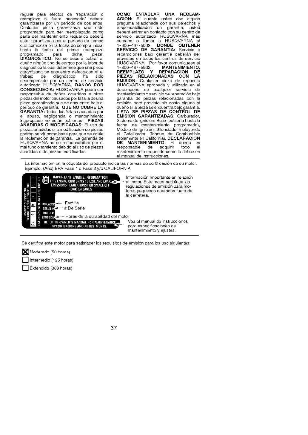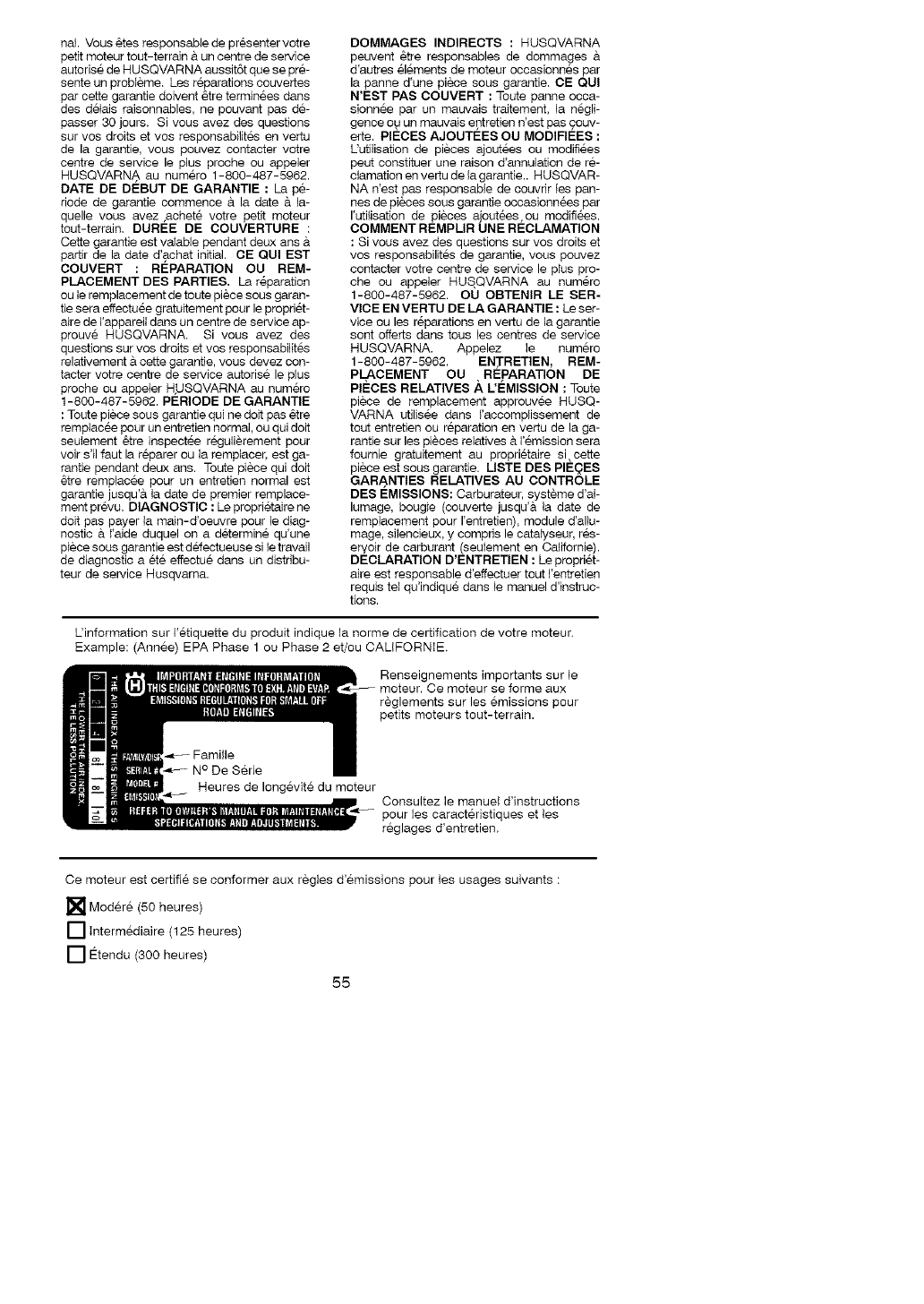 Uinformation sur I'etiquette du produit indique la norme de certification de votre moteur.