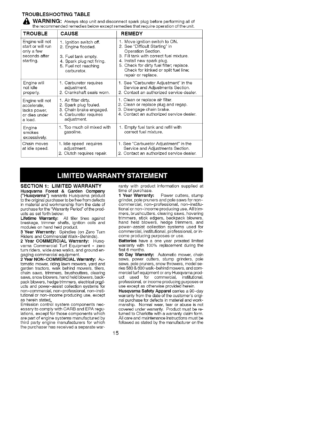Husqvarna 142 User Manual CHAIN SAW Manuals And Guides L0704279