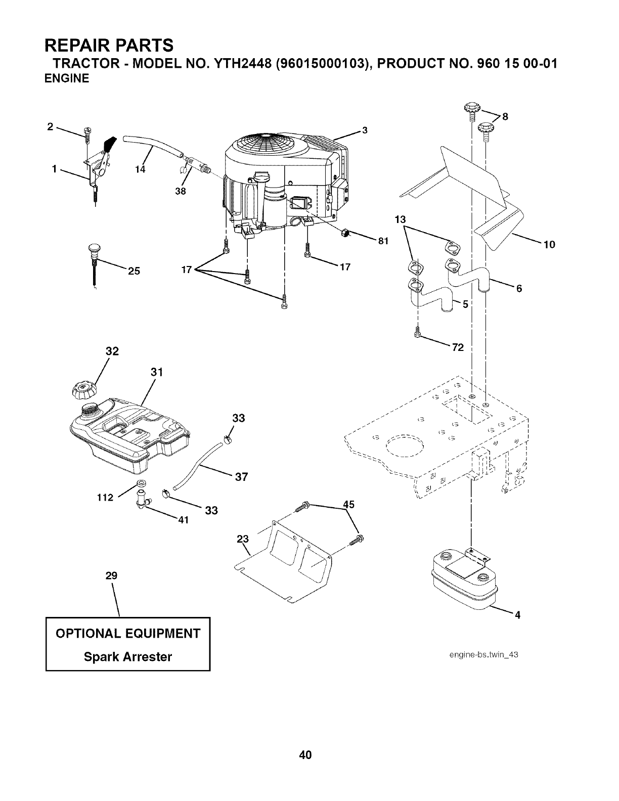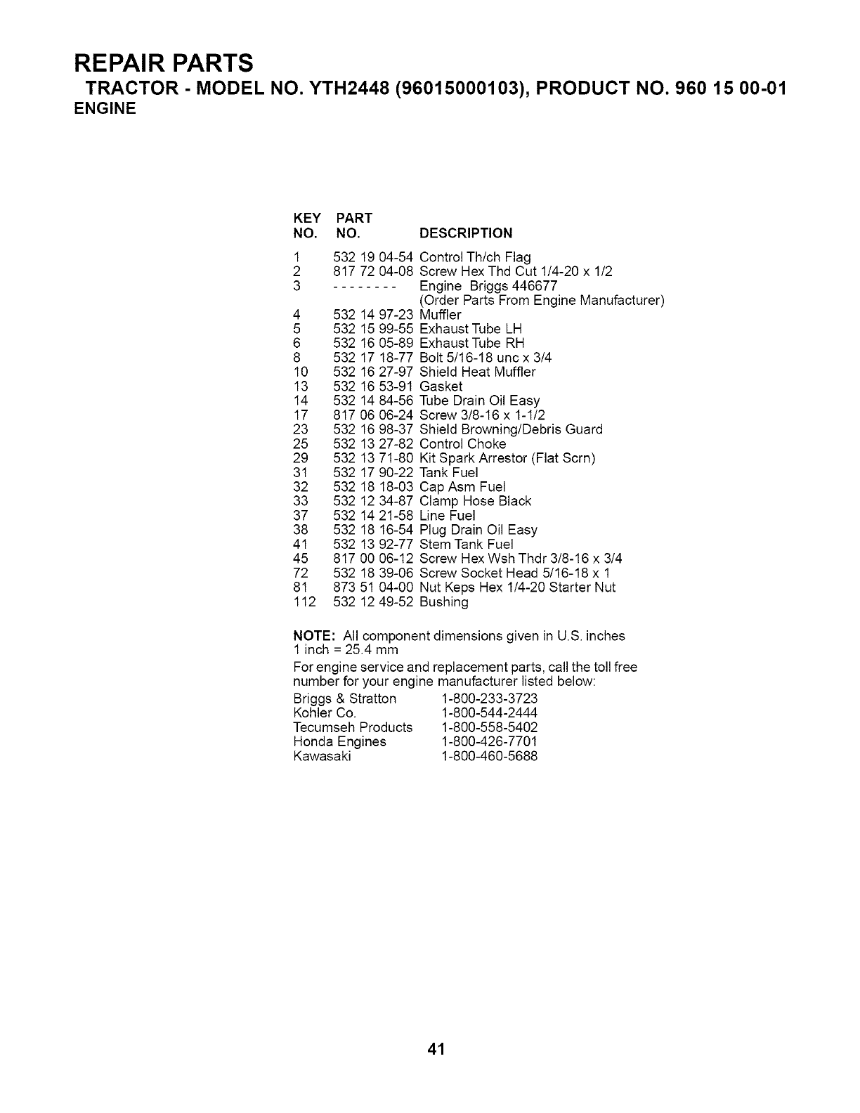 (3)Engine and drive systems not manufactured by Husqvama; these items are covered by the respective
