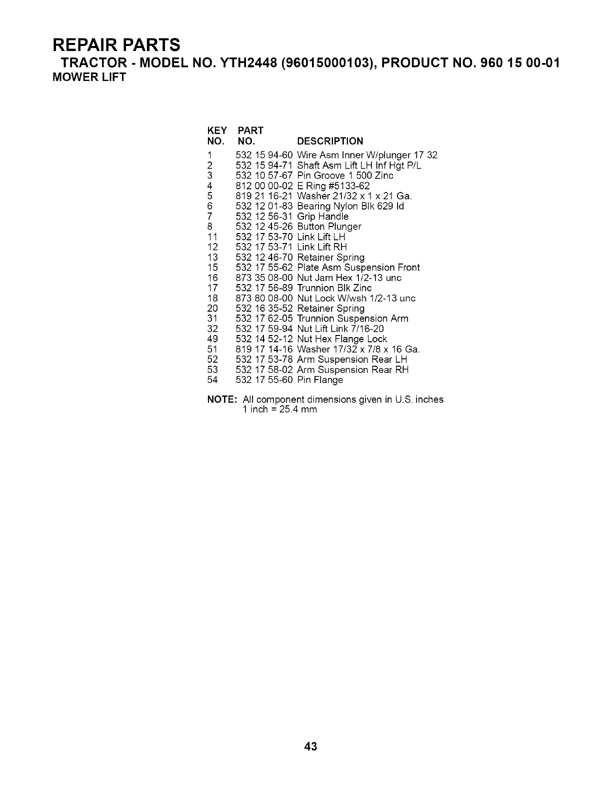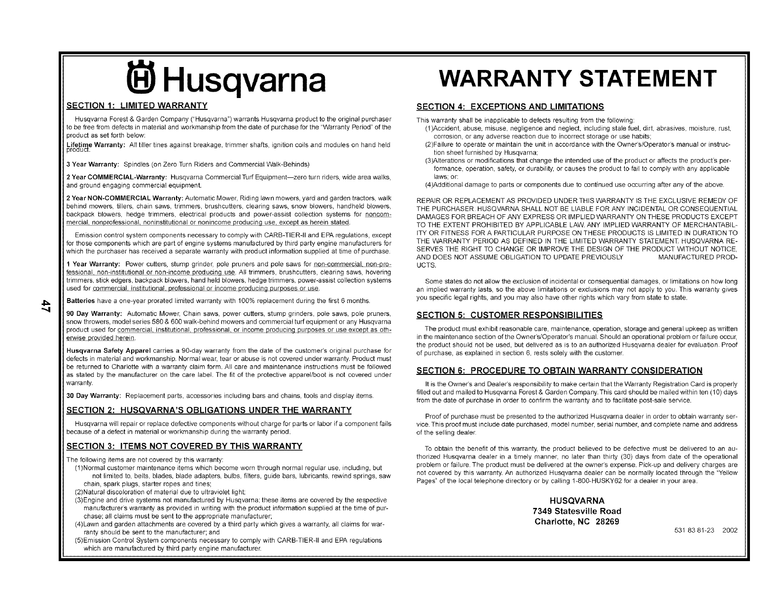 filled out and mailed to Husqvarna Forest & Garden Company. This card should be mailed within ten (10) days