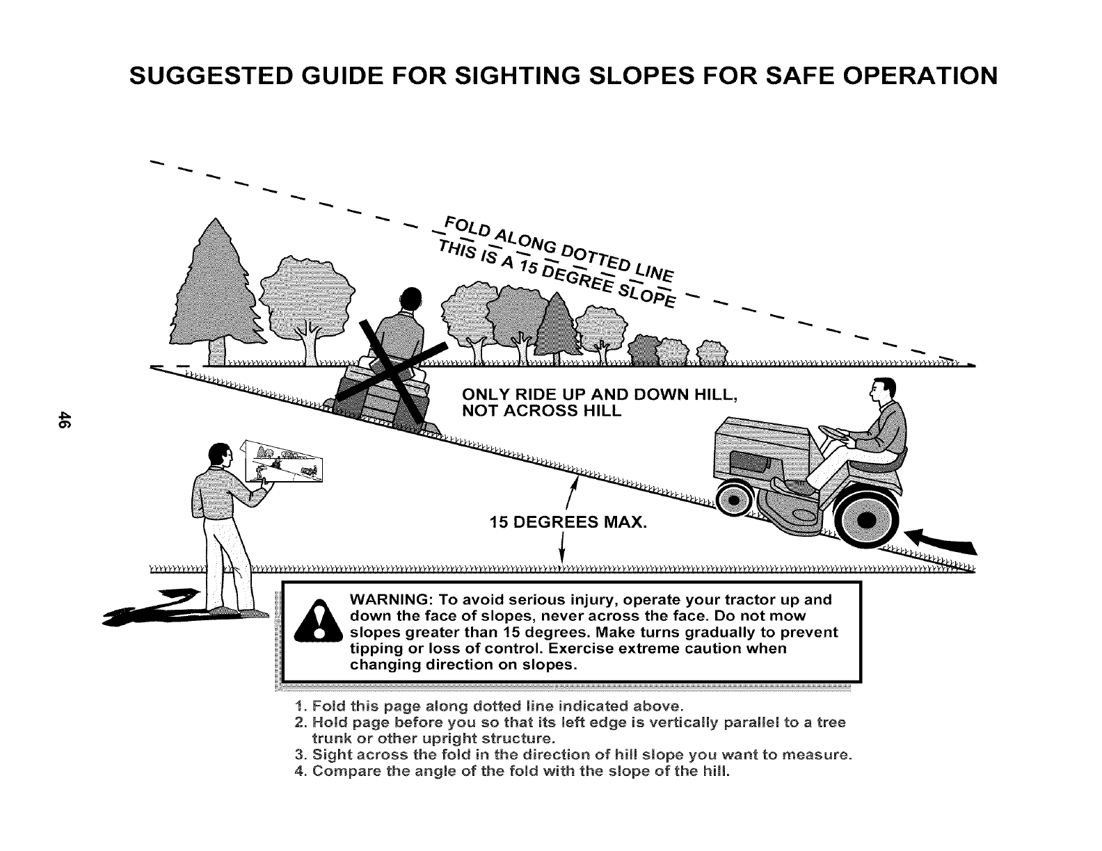 slopes greater than 15 degrees. Make turns gradually to prevent