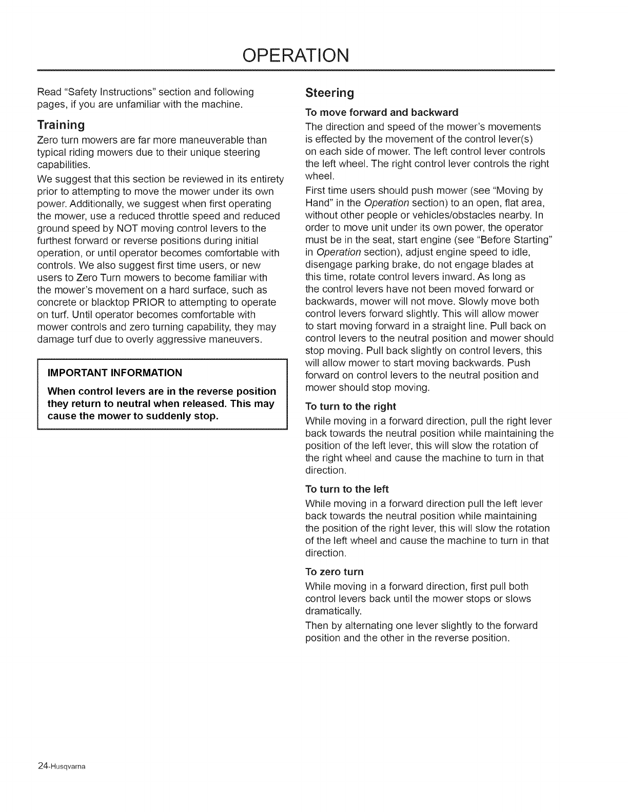 Husqvarna 289820 User Manual ZERO TURN TRACTOR Manuals And Guides L0904416