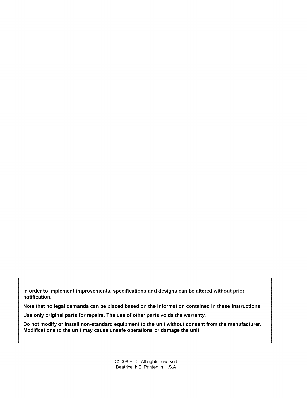 Do not modify or install non-standard equipment to the unit without consent from the manufacturer.