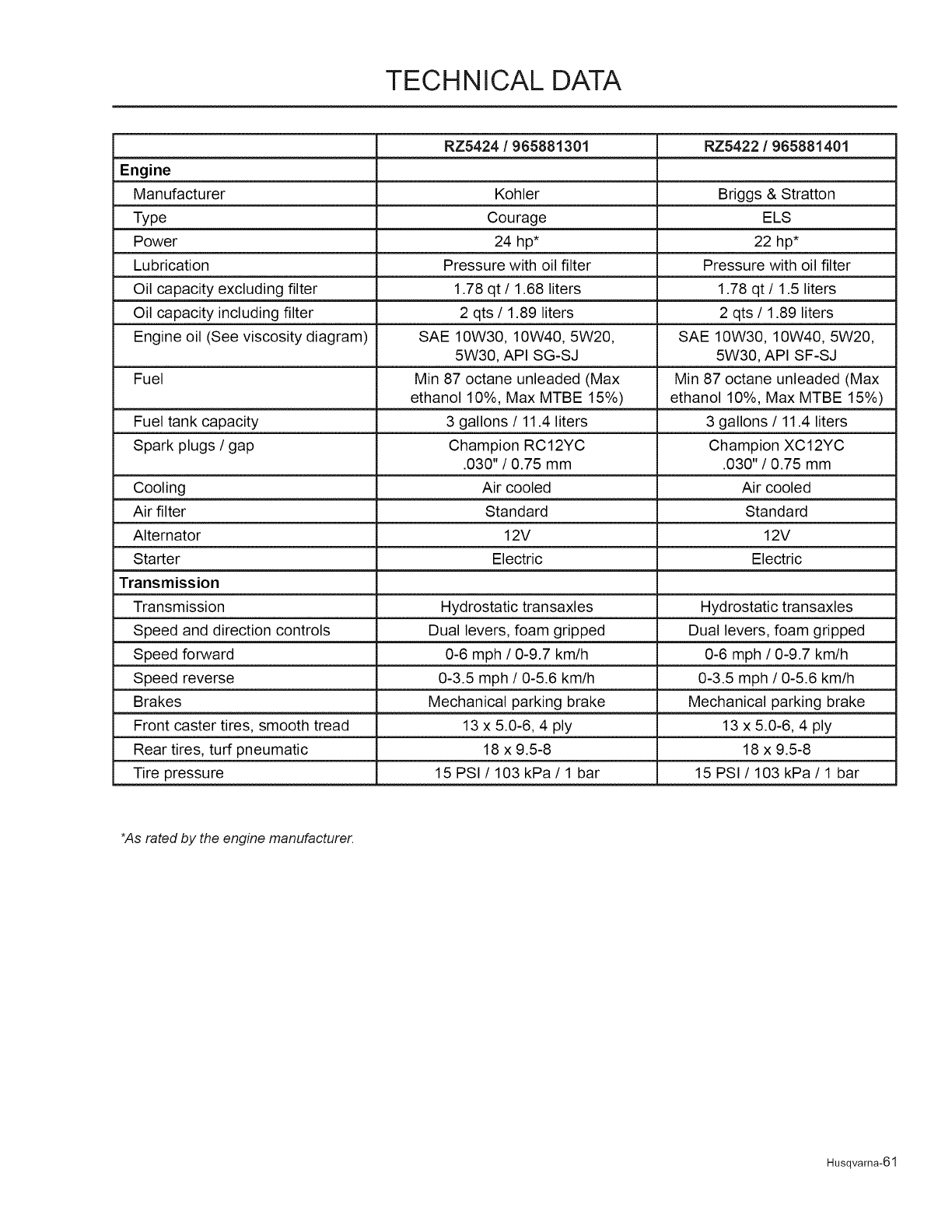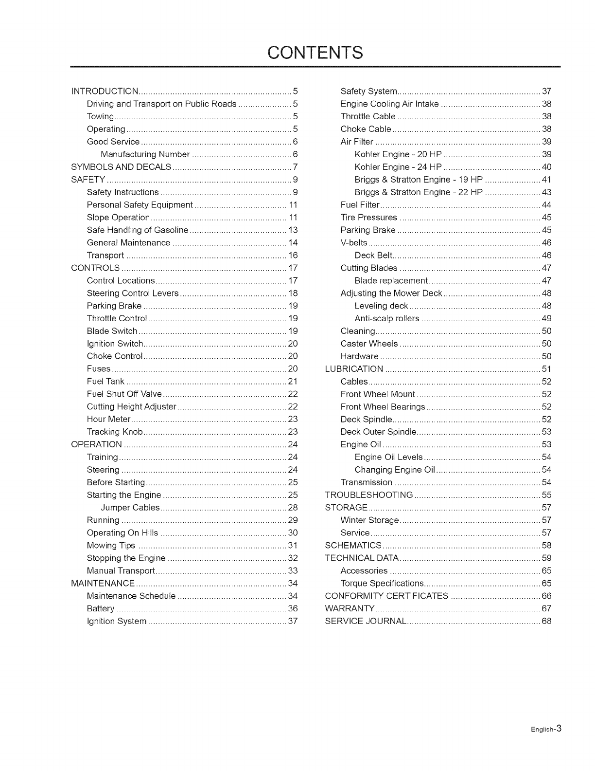 Briggs & Stratton Engine - 22 HP ....................... 43