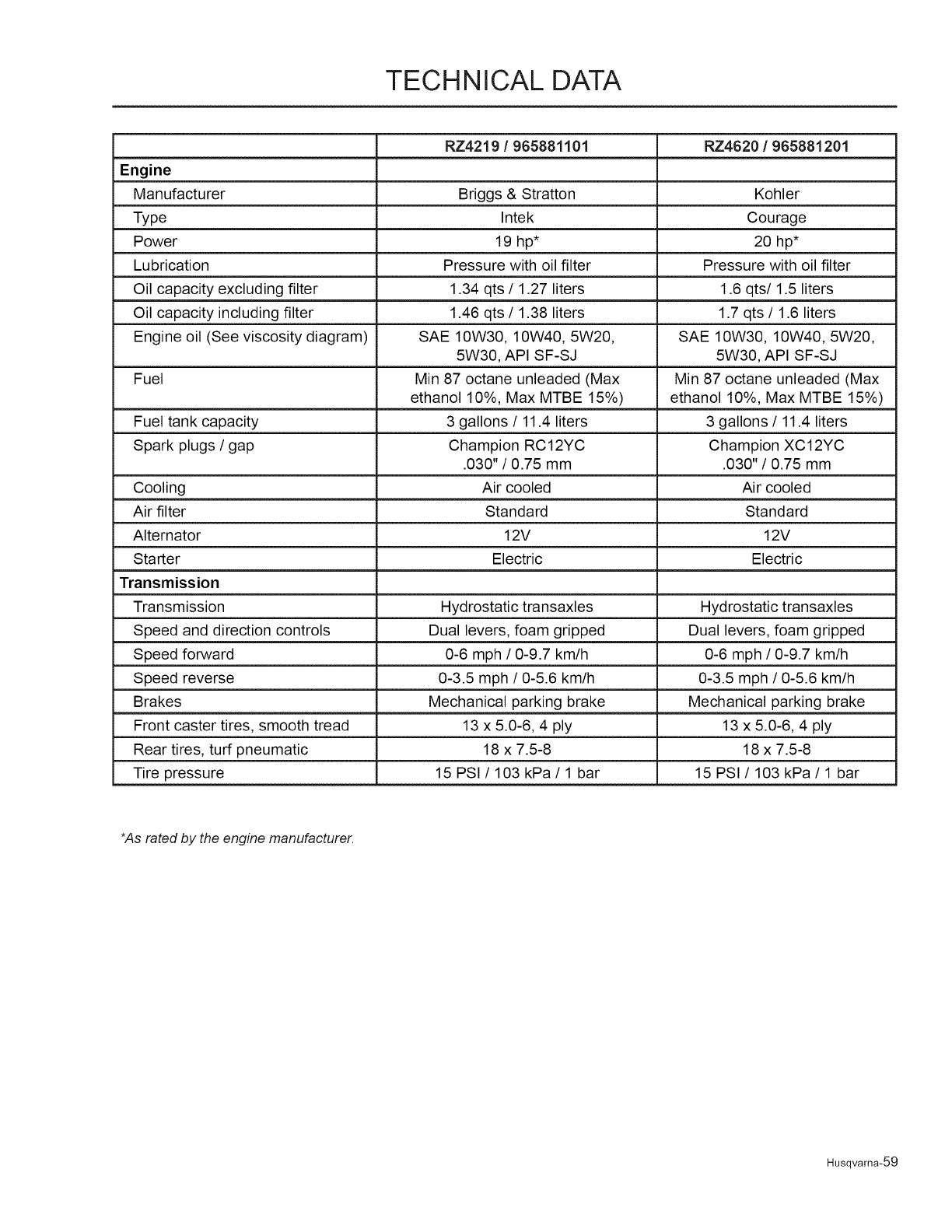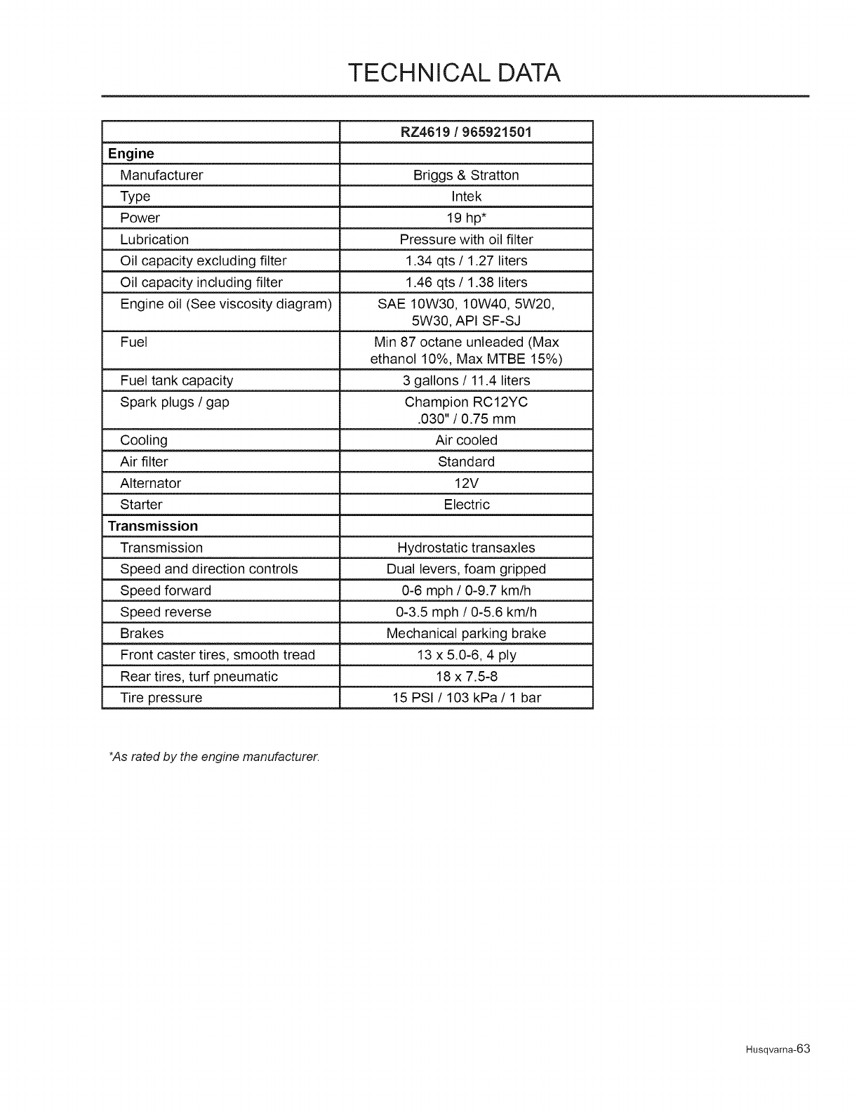 Briggs & Stratton Engine - 19 HP ....................... 41