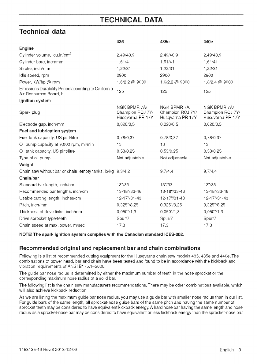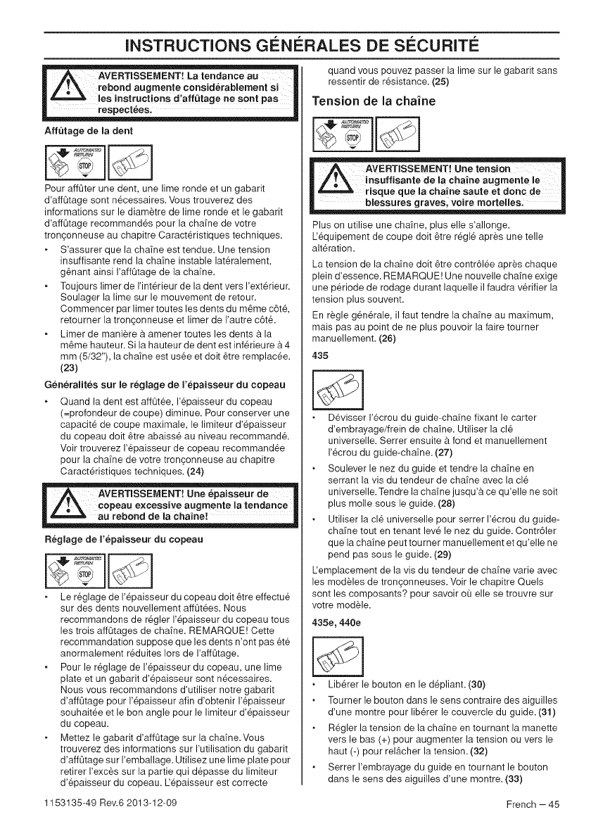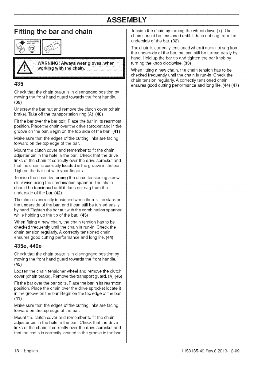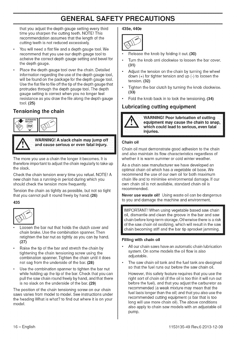 Husqvarna 435 User Manual CHAIN SAW Manuals And Guides 1411253L