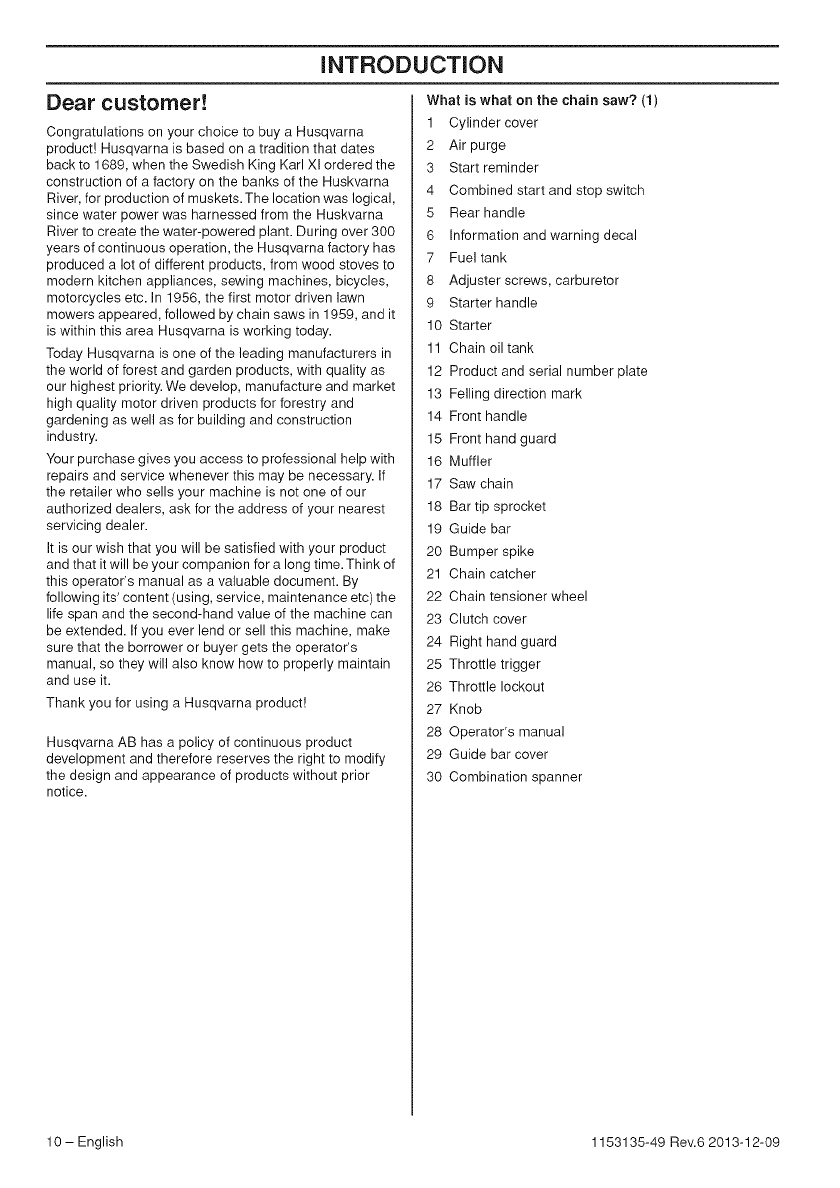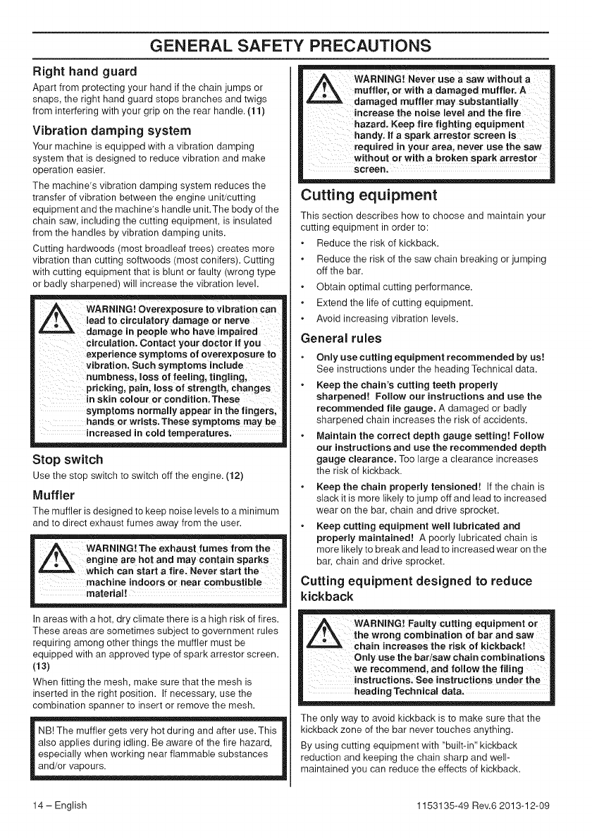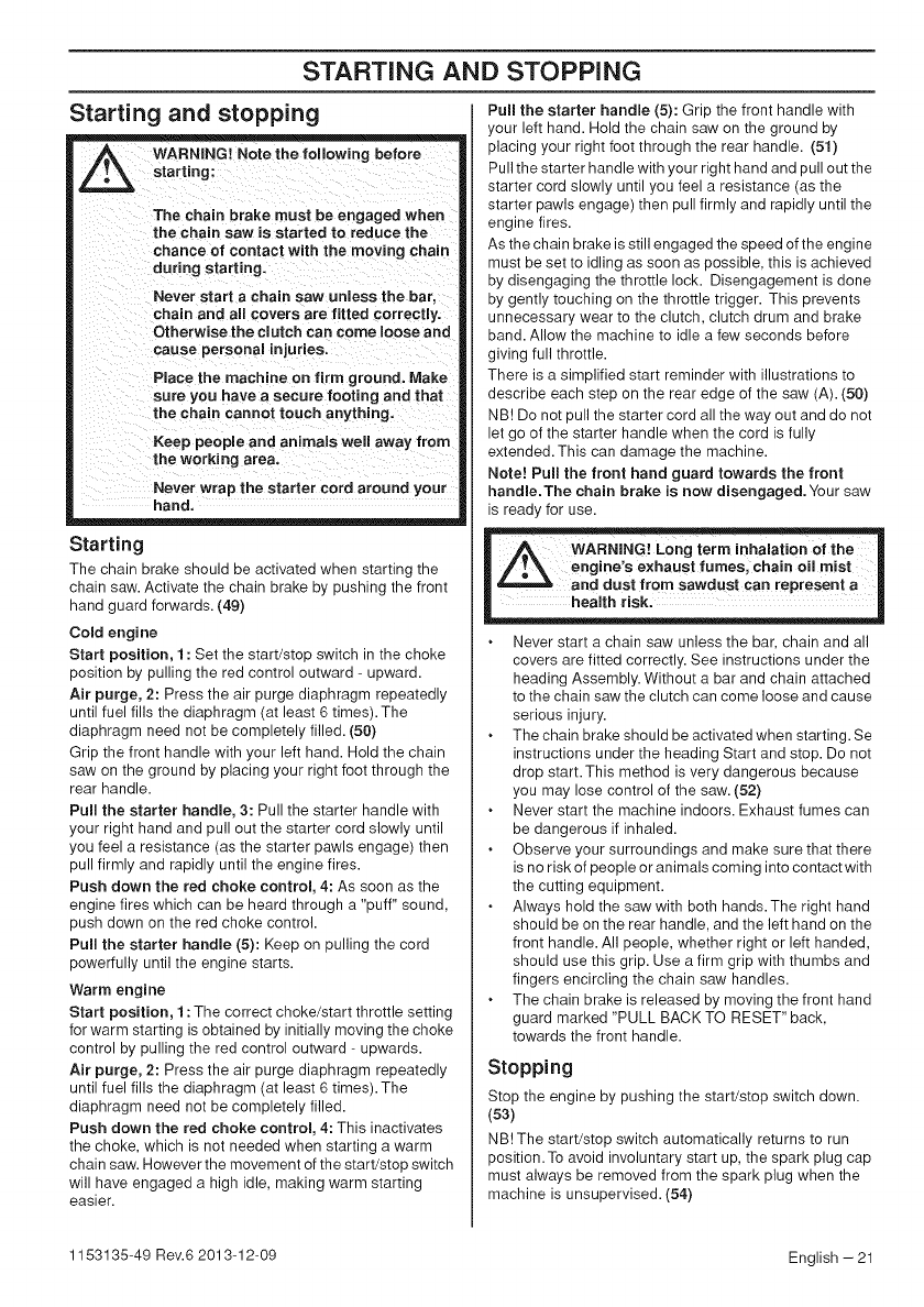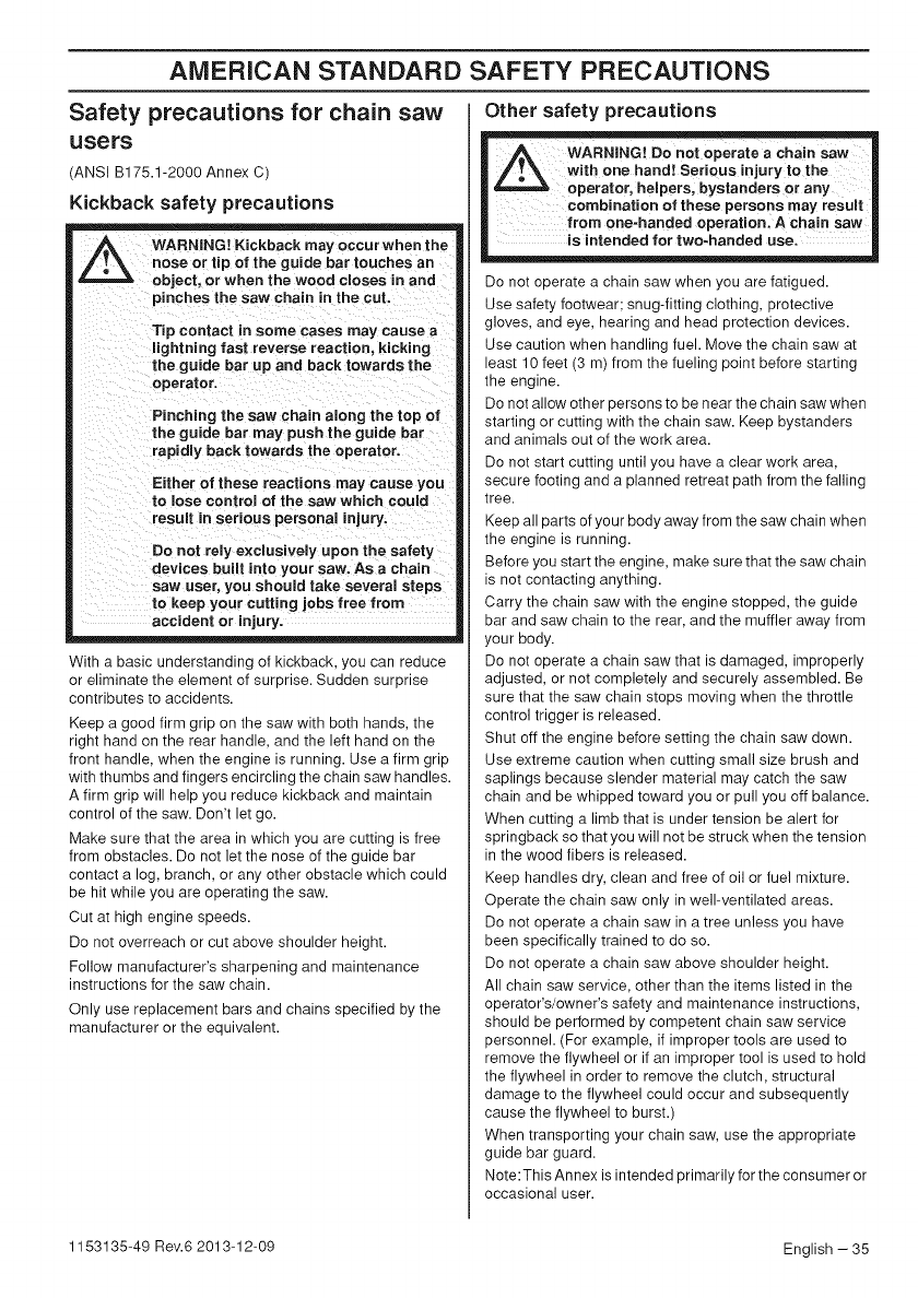 Husqvarna 435 User Manual CHAIN SAW Manuals And Guides 1411253L