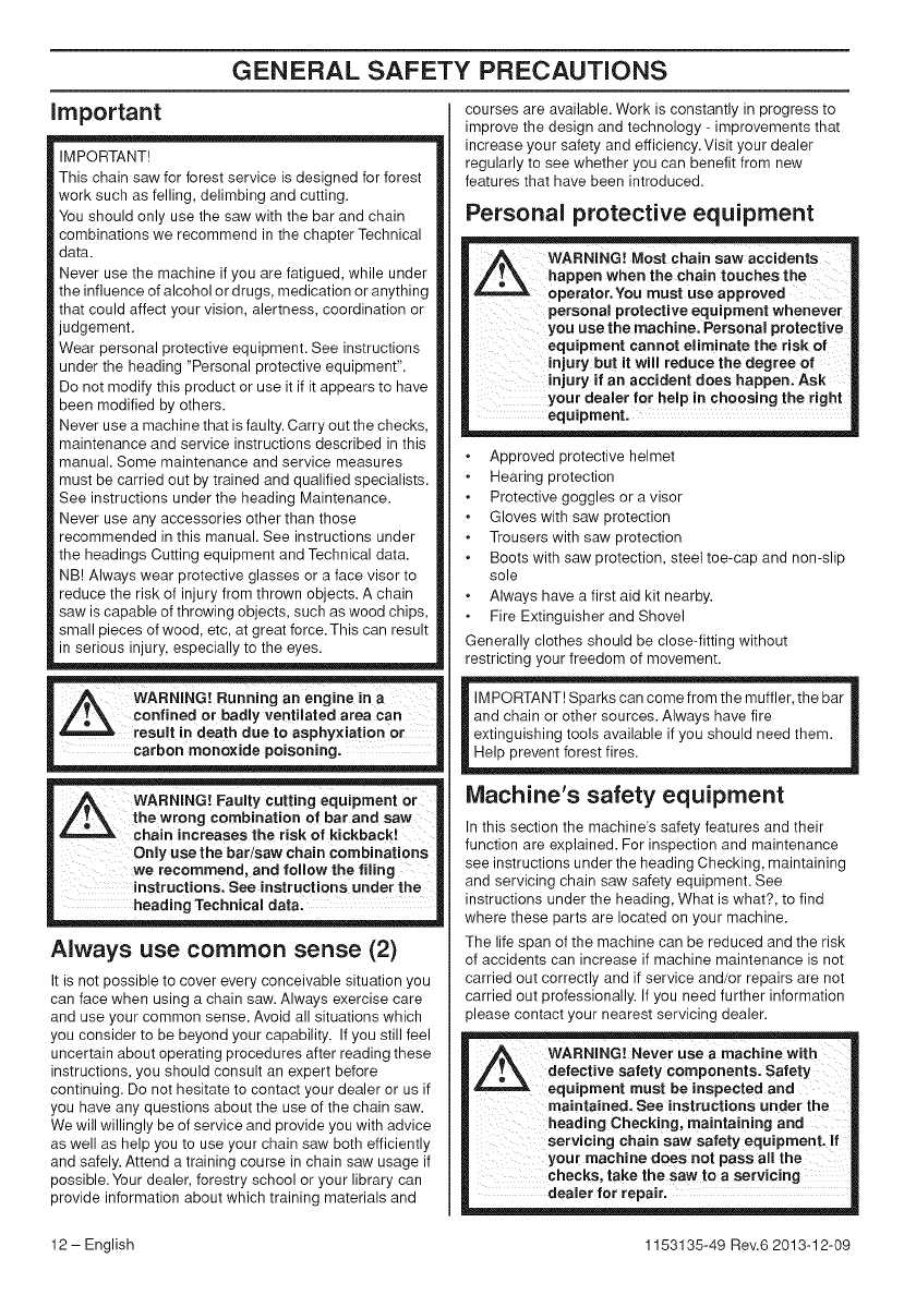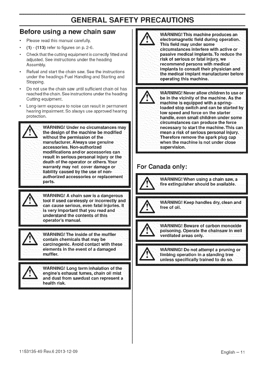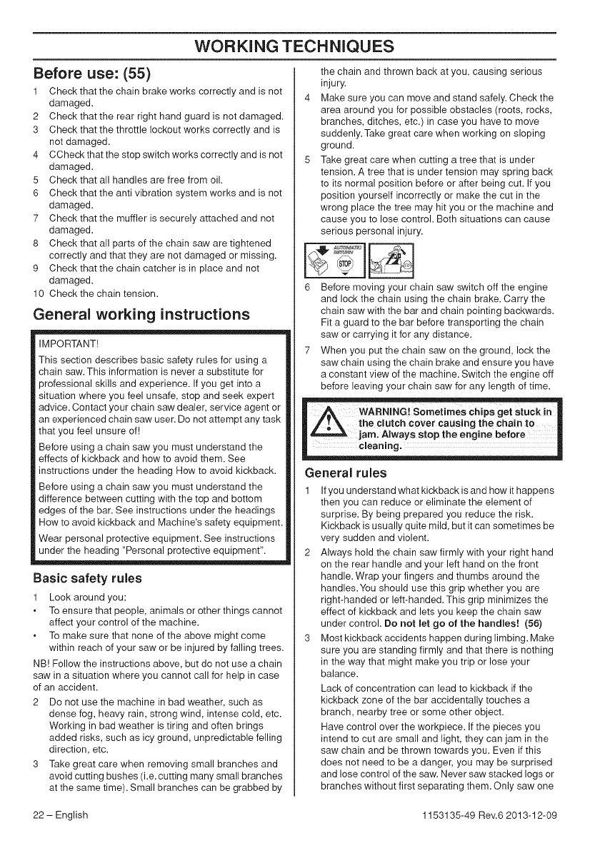 WARNING! Chain saws can be