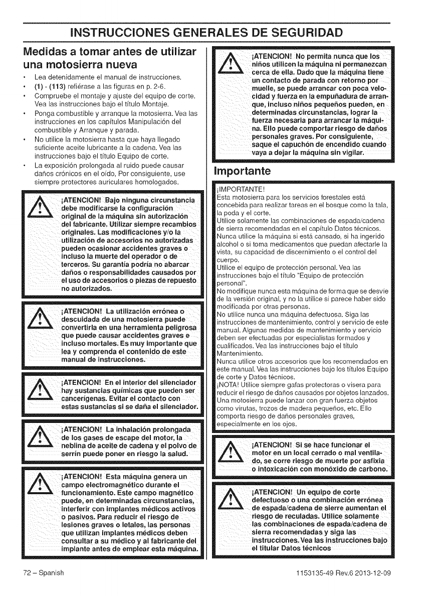 Utilice la motosierra solamente en 6.reas bien ventiladas.