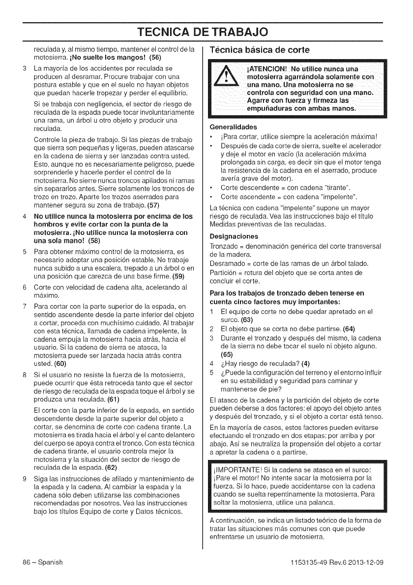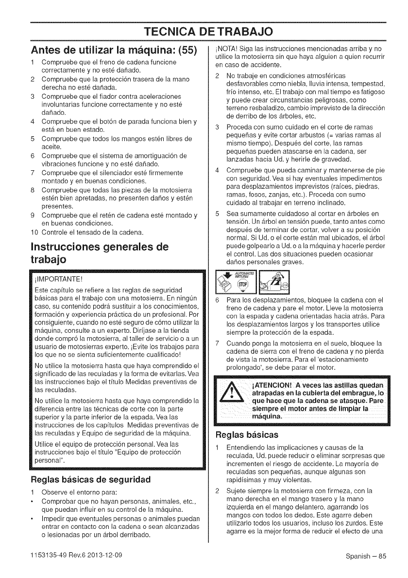ser realizados por t@cnicos de servicio de motosierras