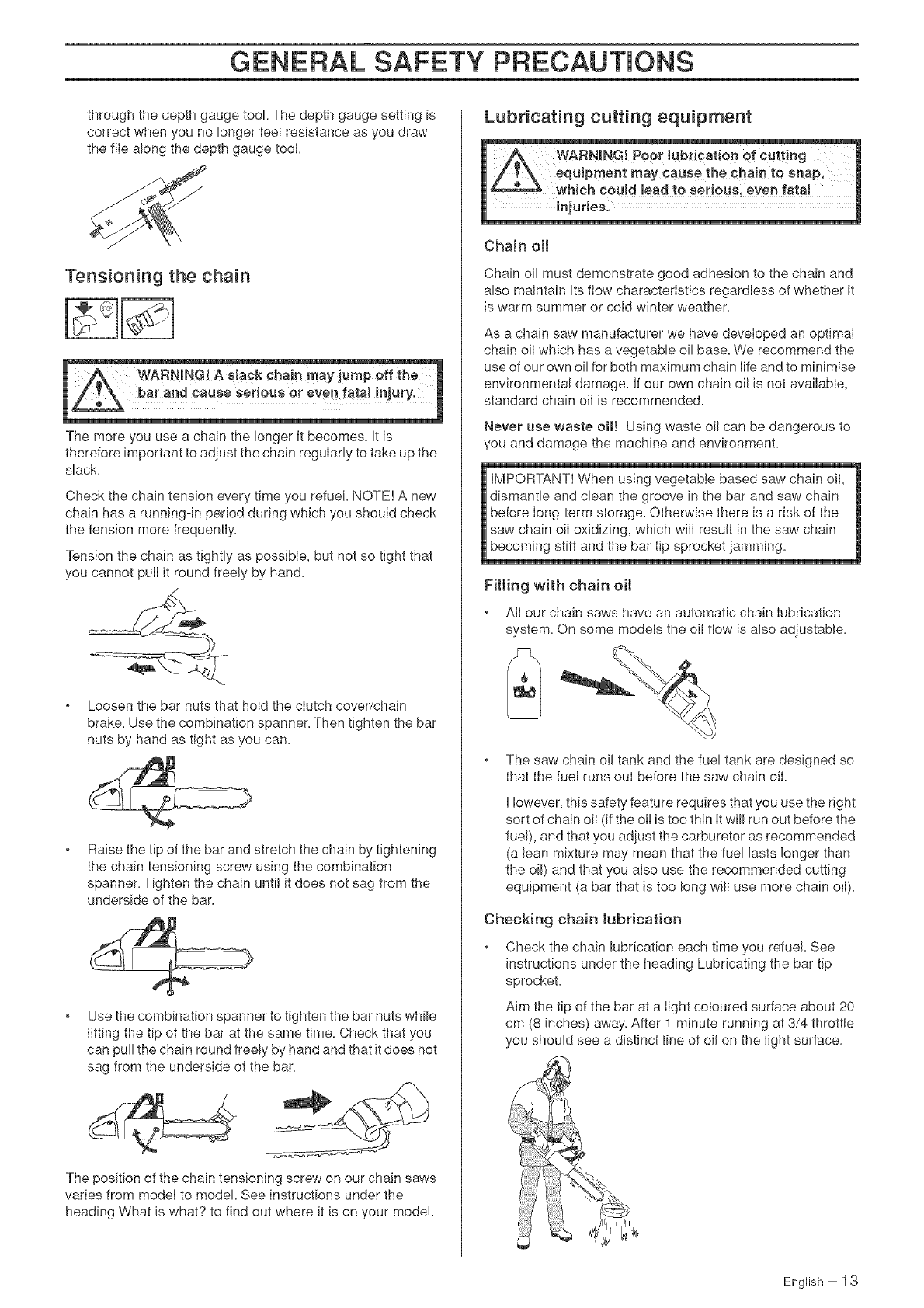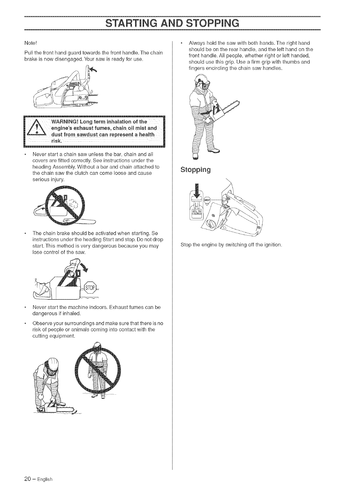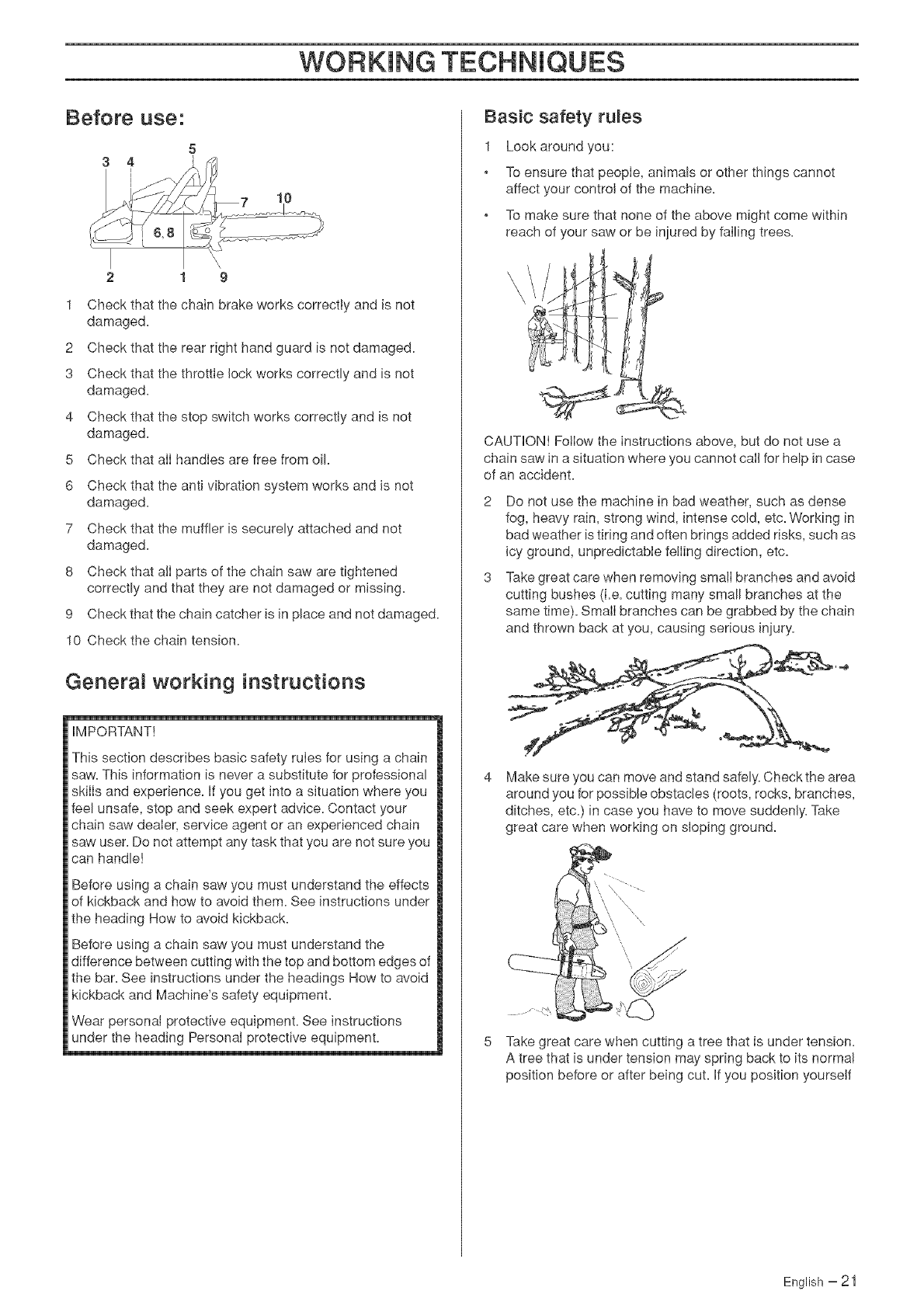 fingers encircling the chain saw handles. A firm grip wi!l help