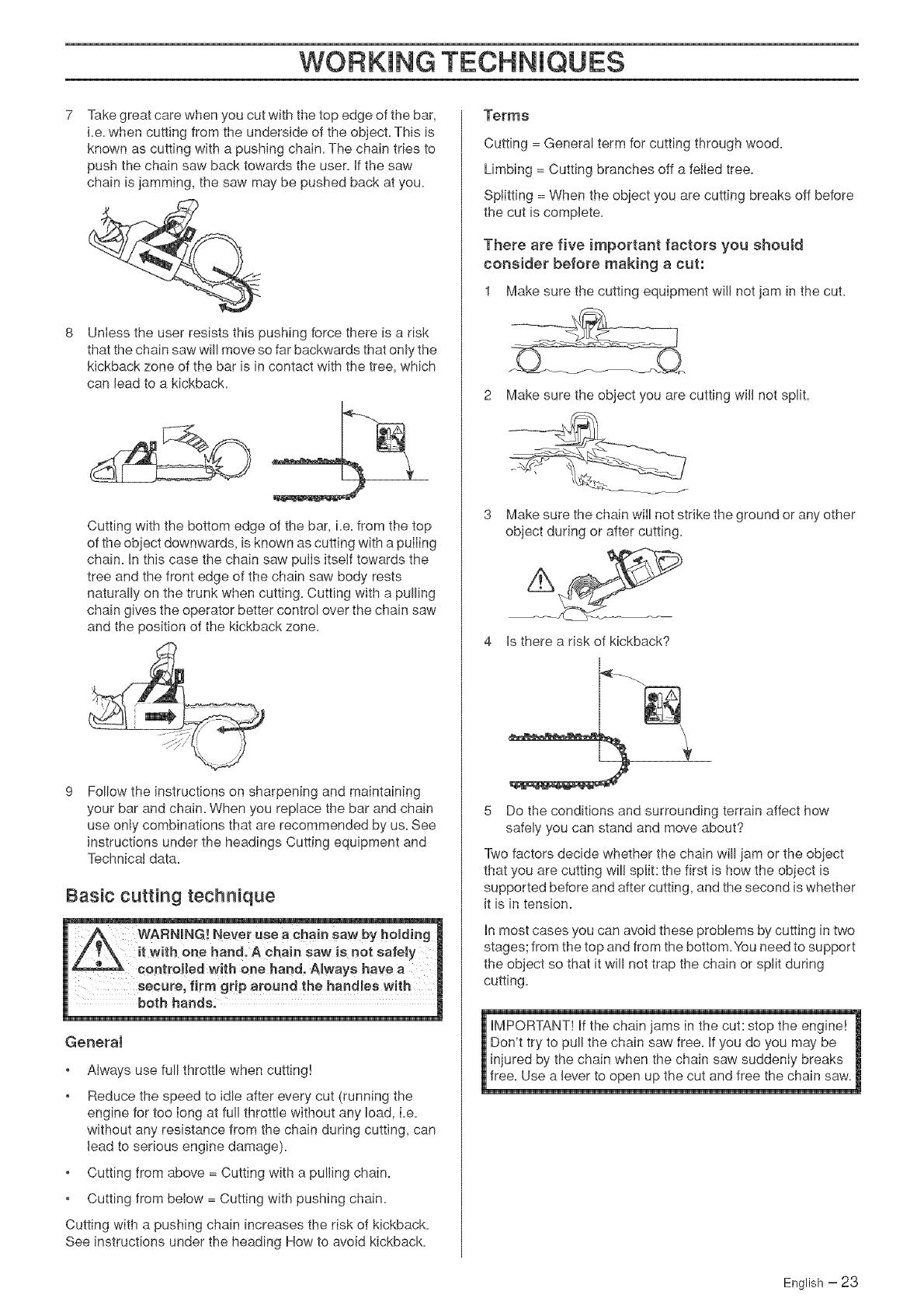 obstacles. Do not let the nose of the guide bar contact a Iog,