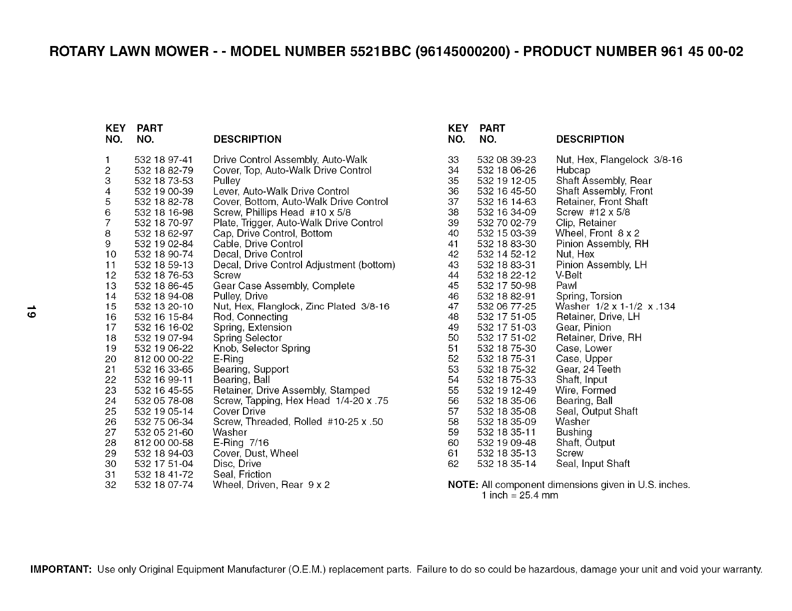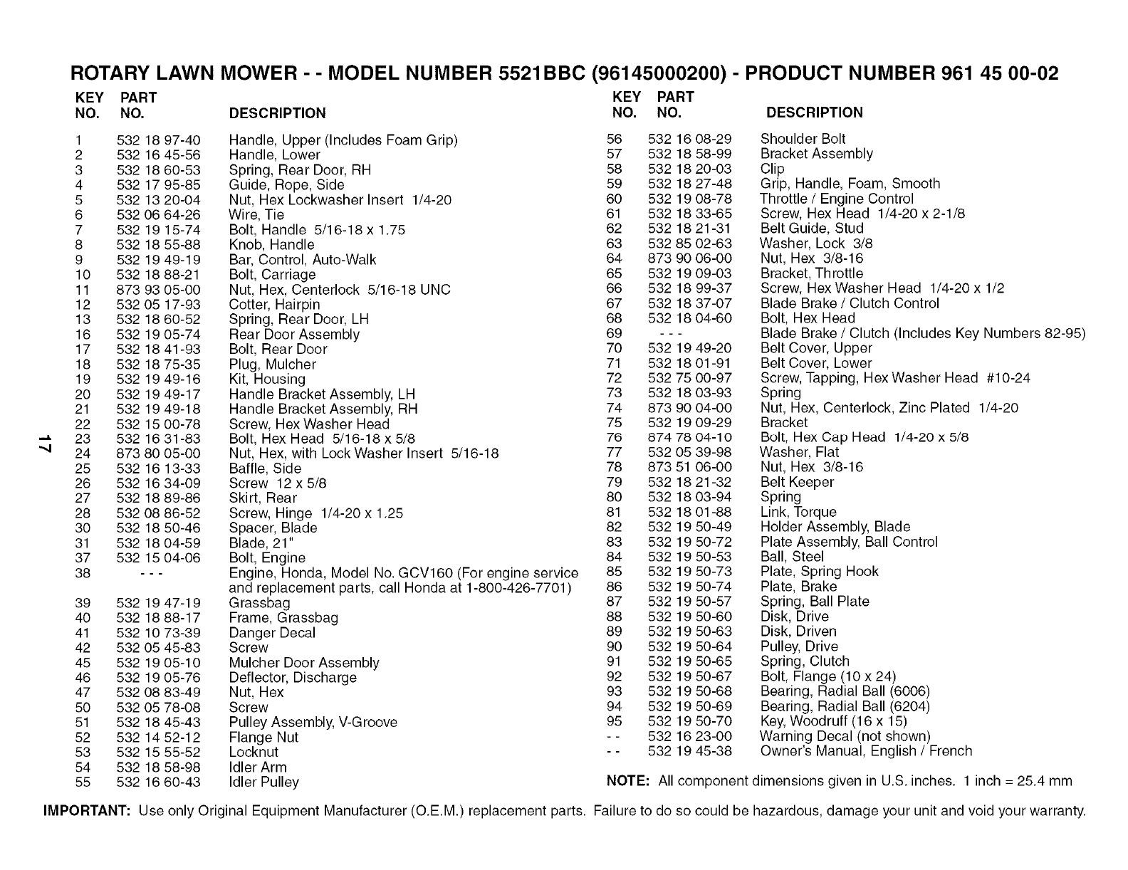 User Manual: Husqvarna 5521BBC 5521BBC HUSQVARNA LAWN MOWER - Manuals and Guides View the owners manual for your HUSQVARNA LAWN MOWER #5521BBC. Home:Lawn & Garden Parts:Husqvarna Parts:Husqvarna LAWN MOWER Manual
