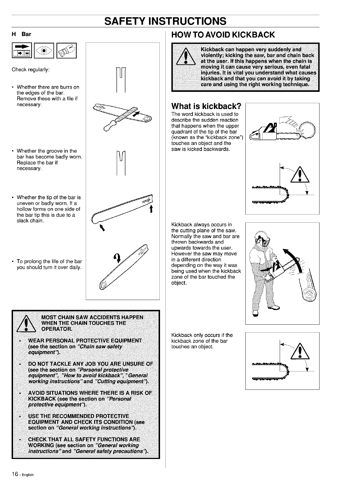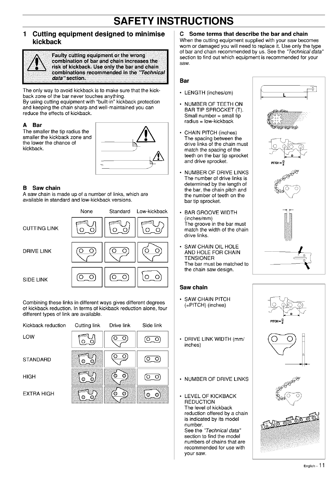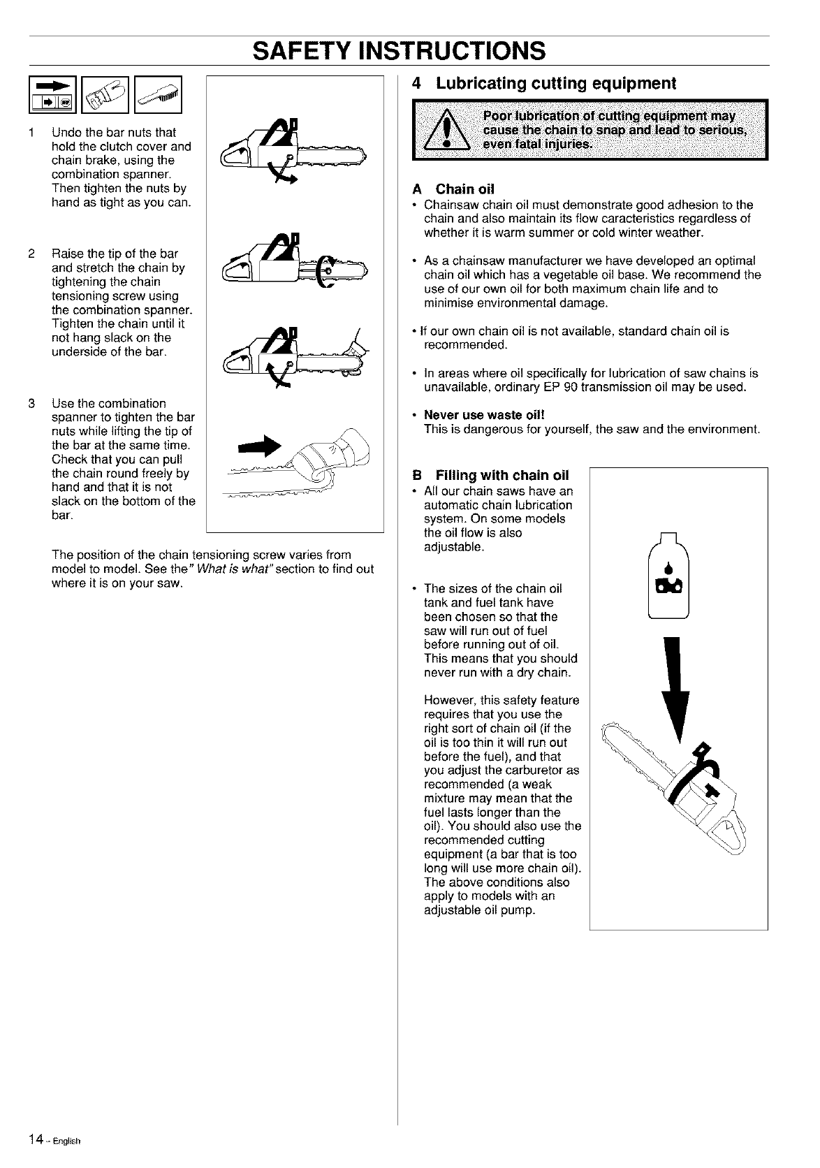 damage to the bar, drive sprocket and chain.