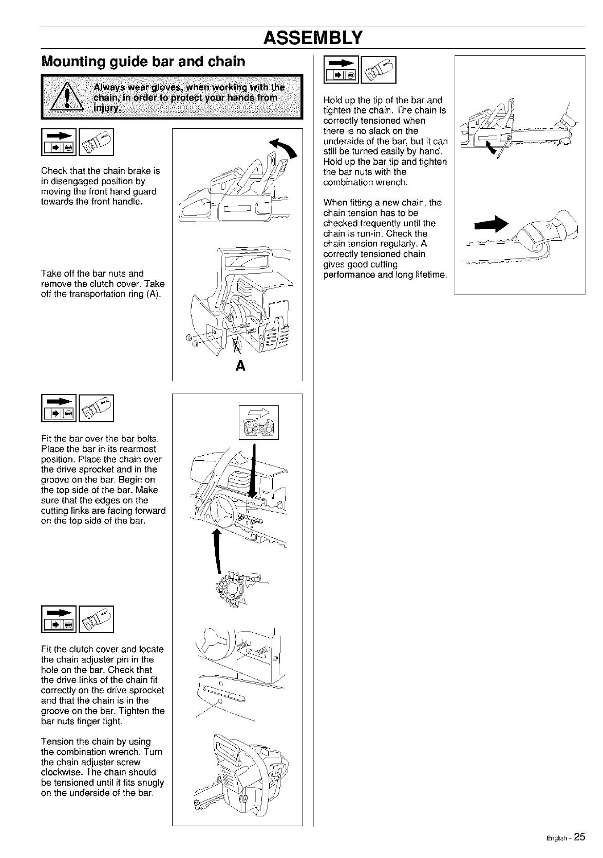 • Do not use the saw until sufficient chain oil has reached the