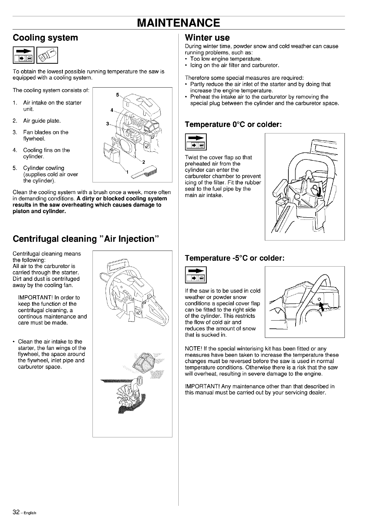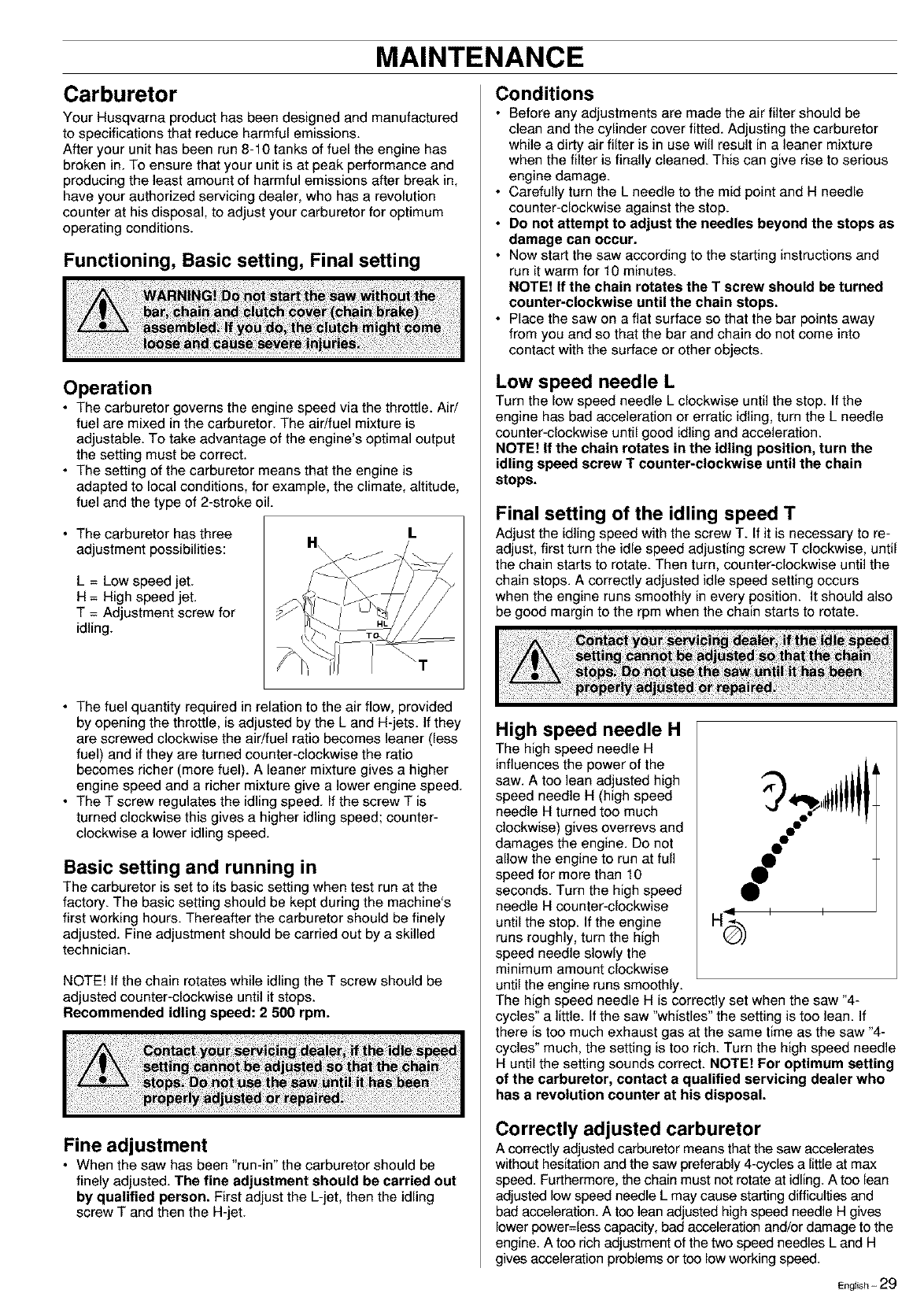 • Refuel and start the saw. Check the carburetor settings.