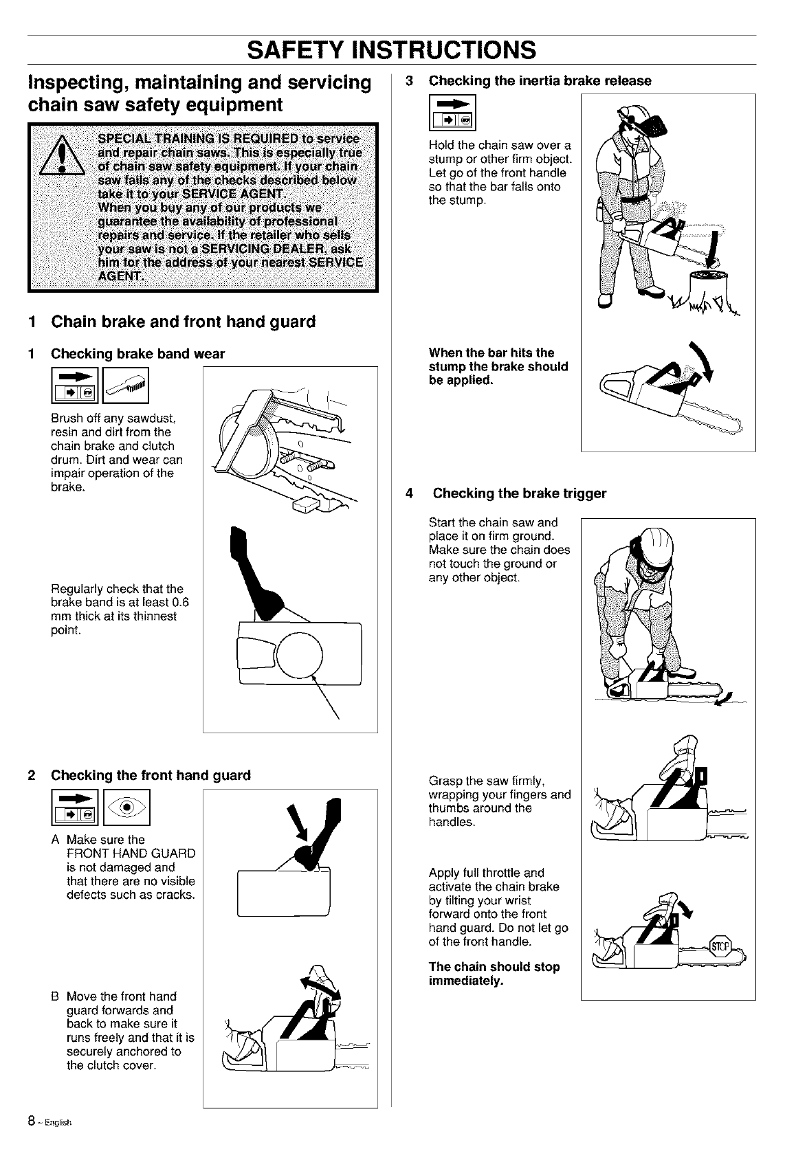 Inspecting, maintaining and servicing chain saw safety