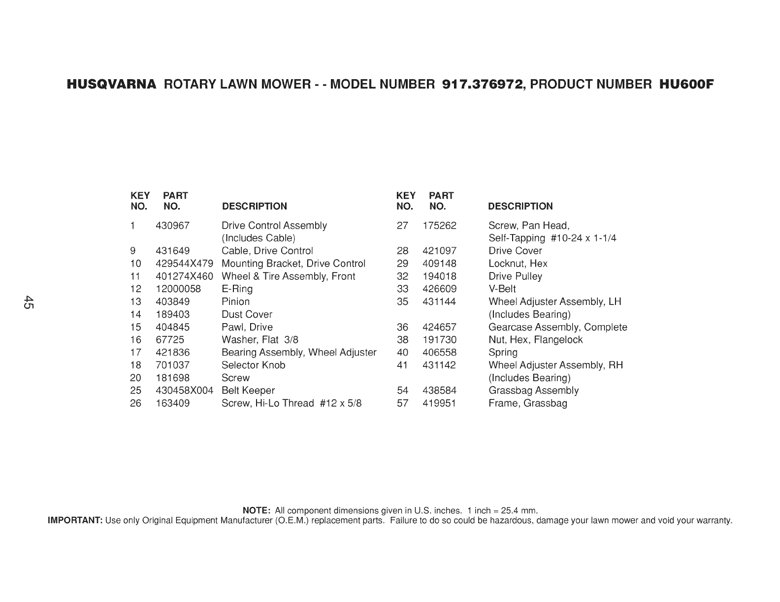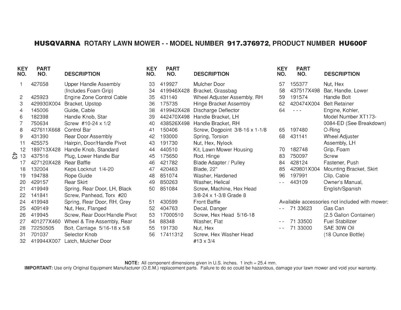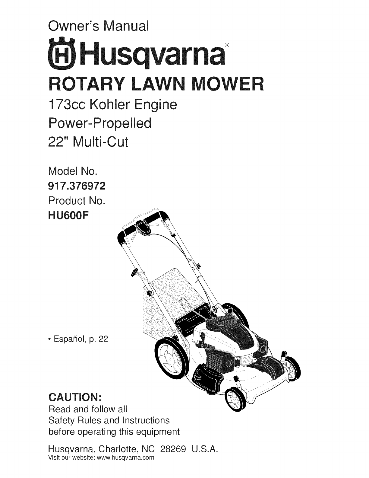 User Manual: Husqvarna 917376972 917376972 HUSQVARNA MOWER - Manuals and Guides View the owners manual for your HUSQVARNA MOWER #917376972. Home:Lawn & Garden Parts:Husqvarna Parts:Husqvarna MOWER Manual
