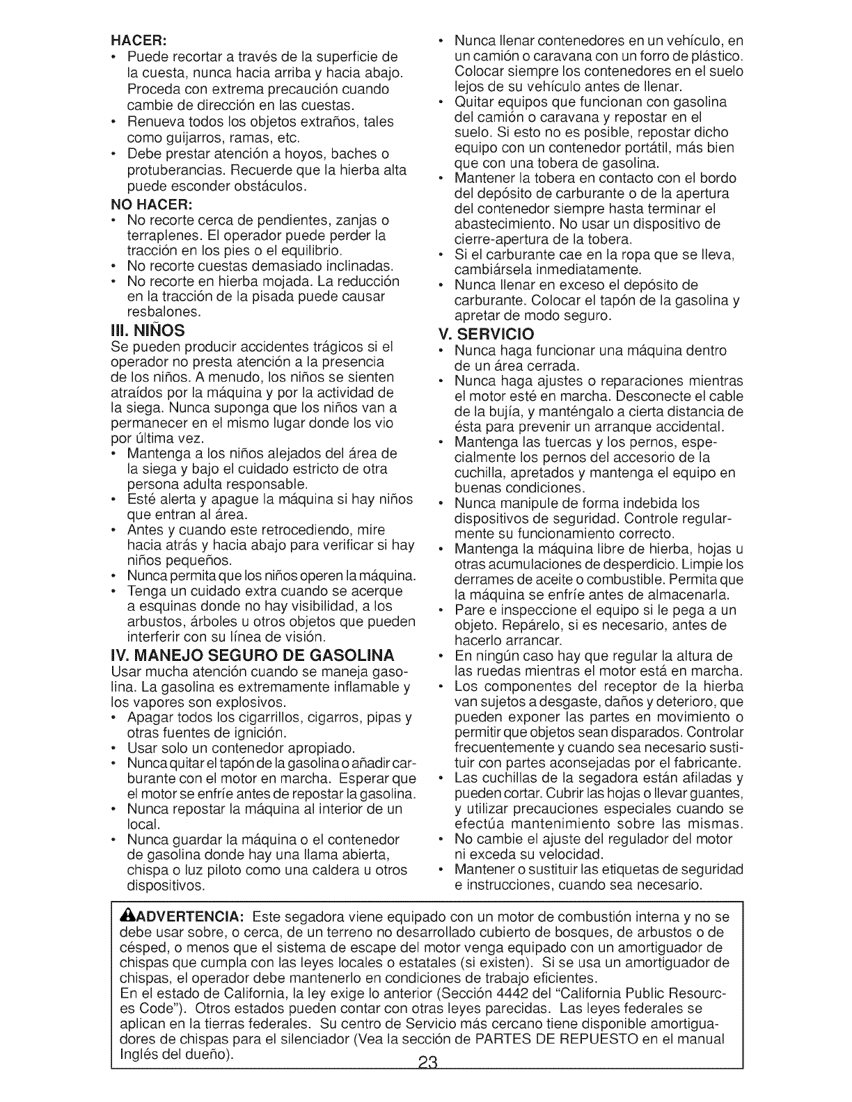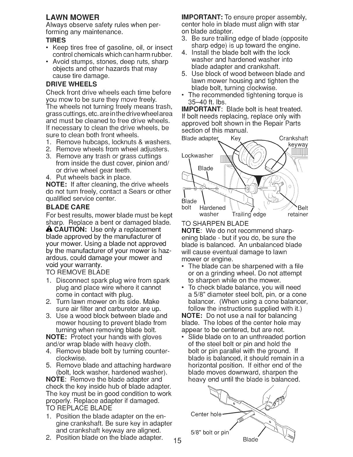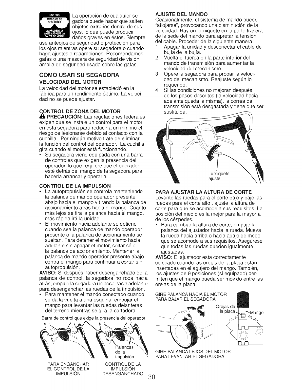 o Do not pull mower backwards unless abso-