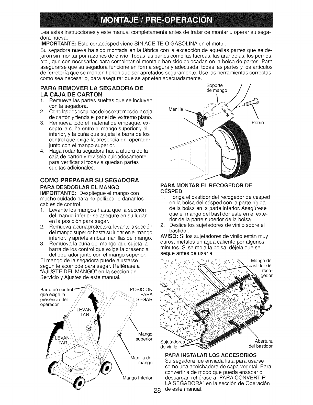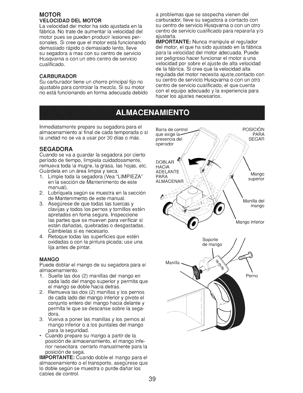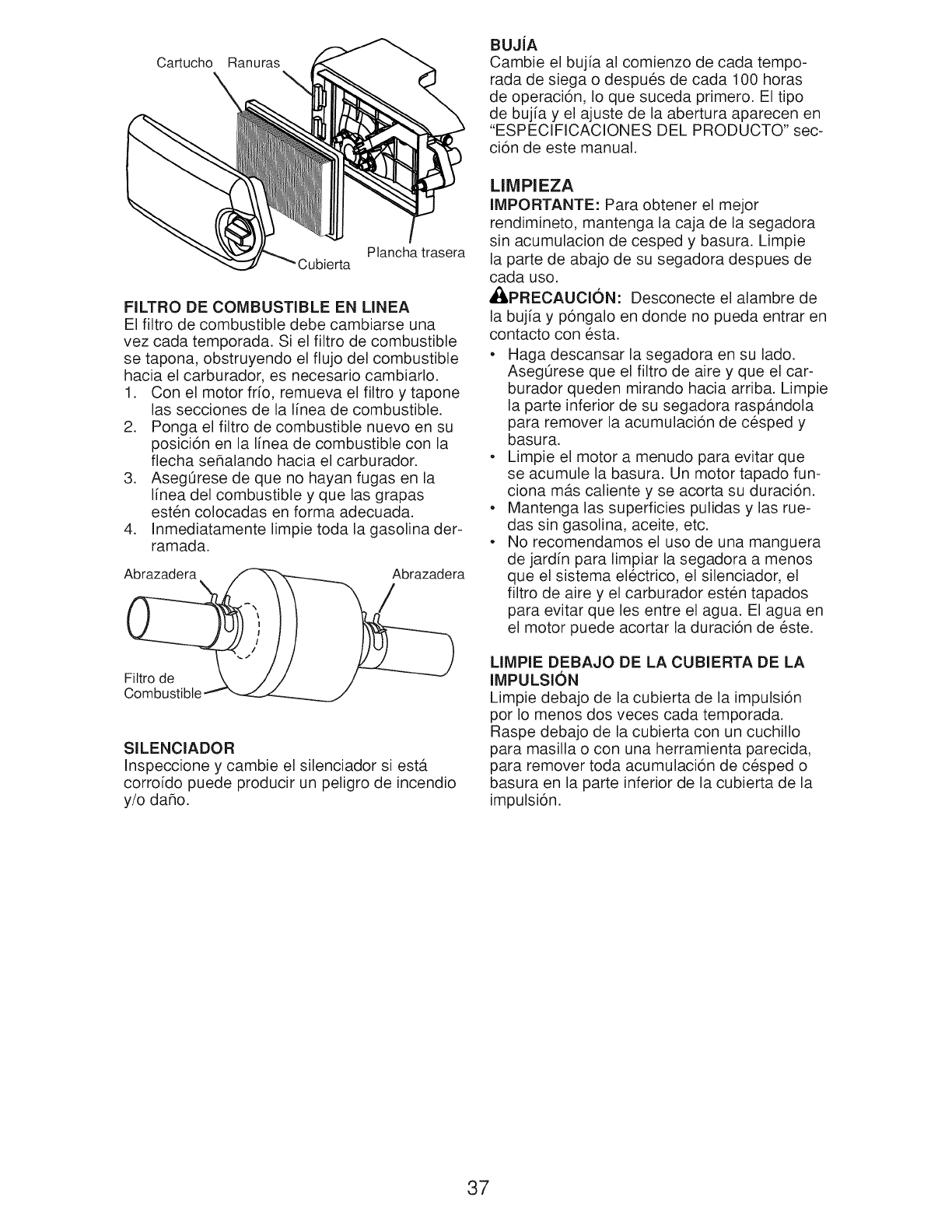 o Do not pull mower backwards unless abso-