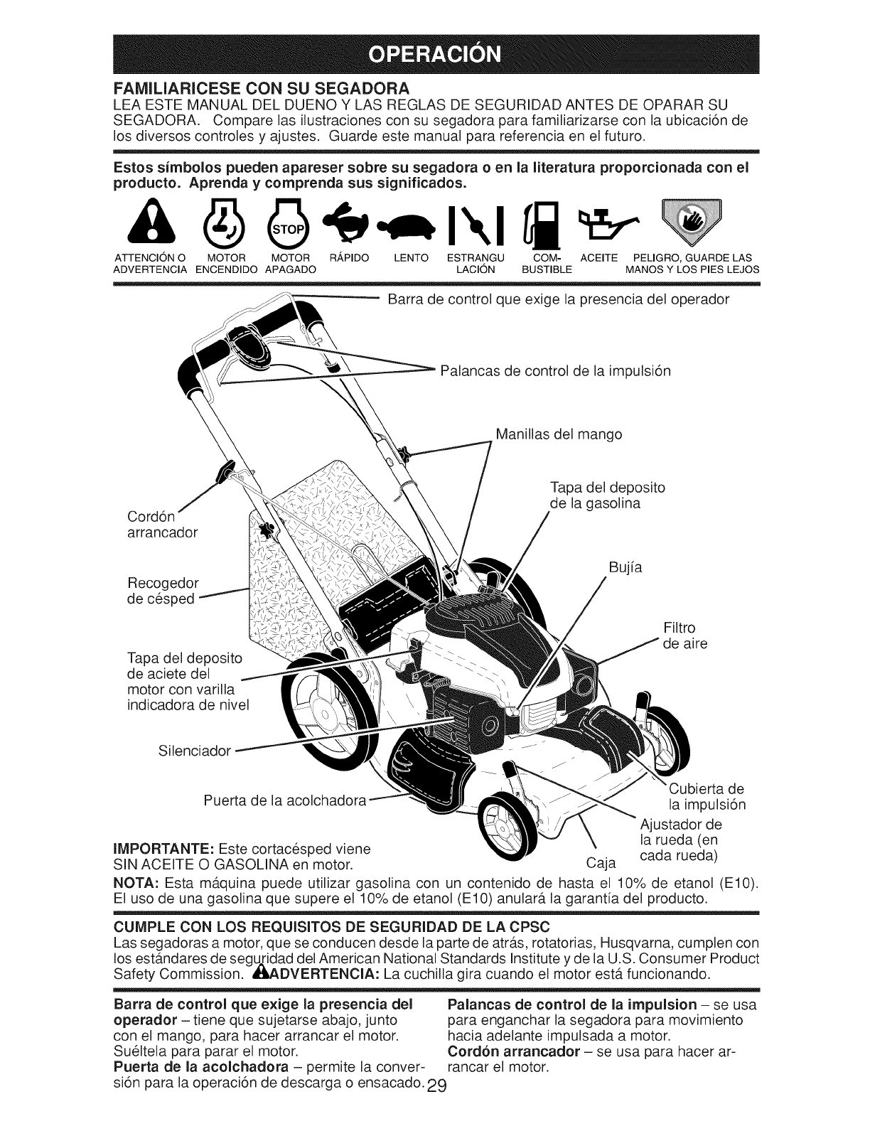 . Do not operate the mower without prop-