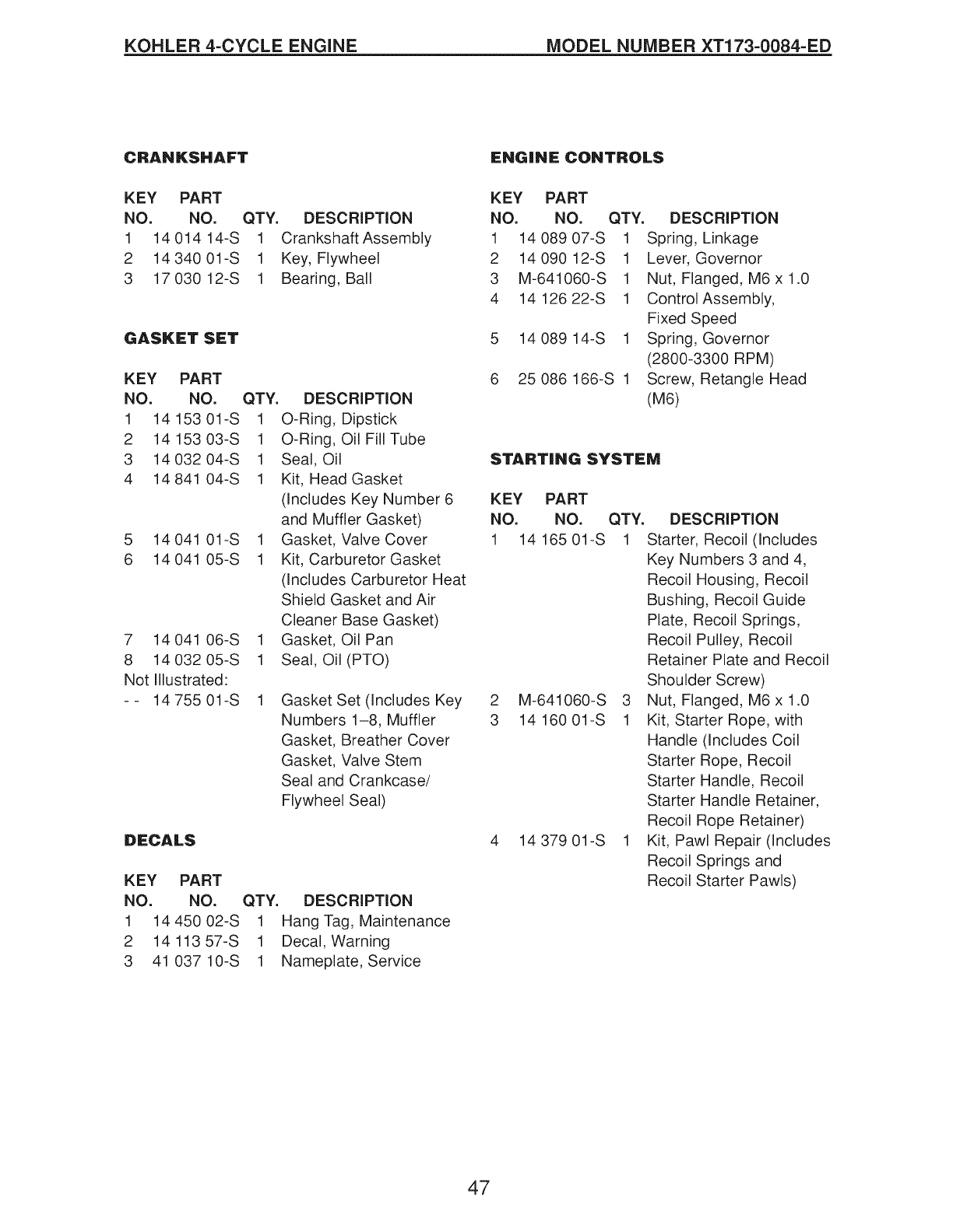 173cc Kohler Engine