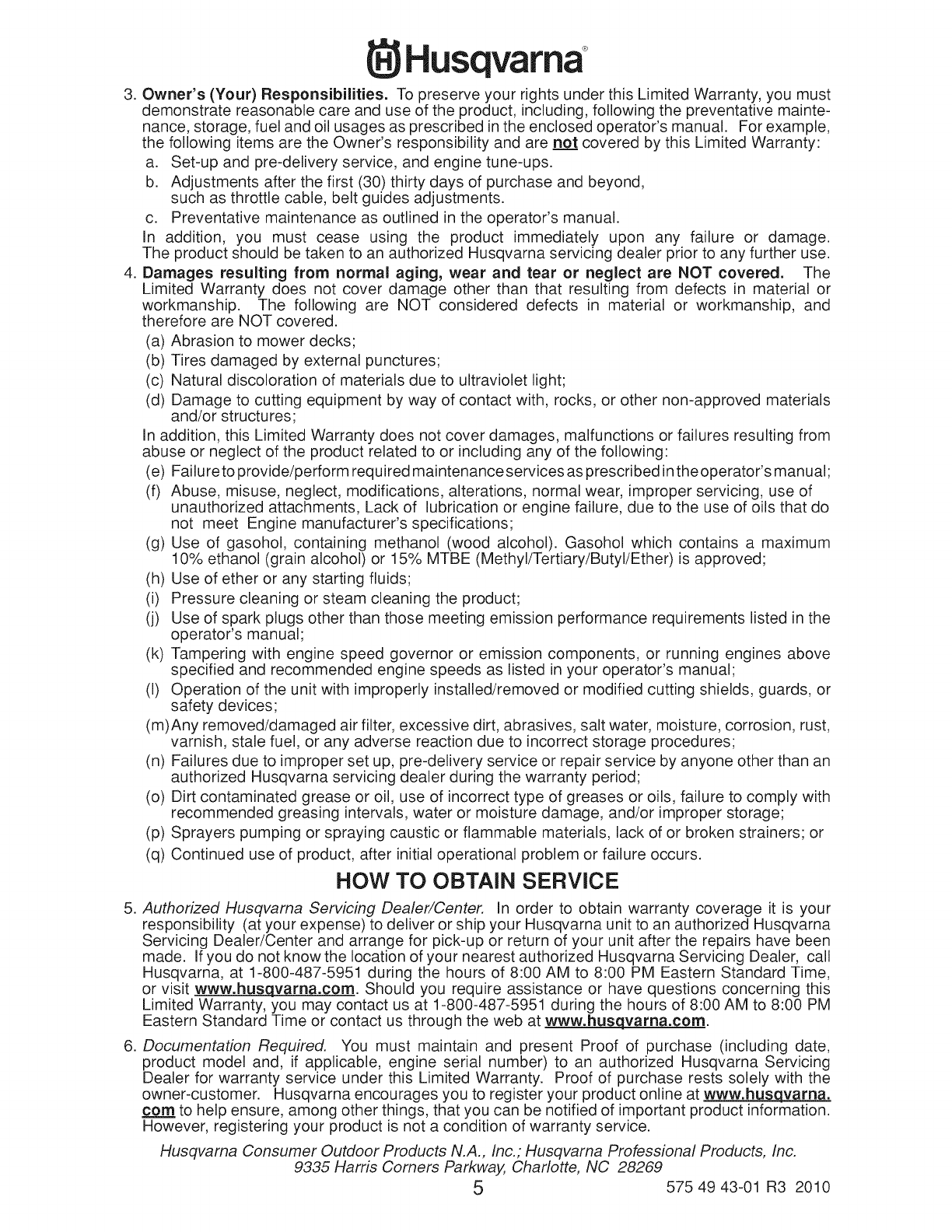 Husqvarna, Charlotte, NC 28269