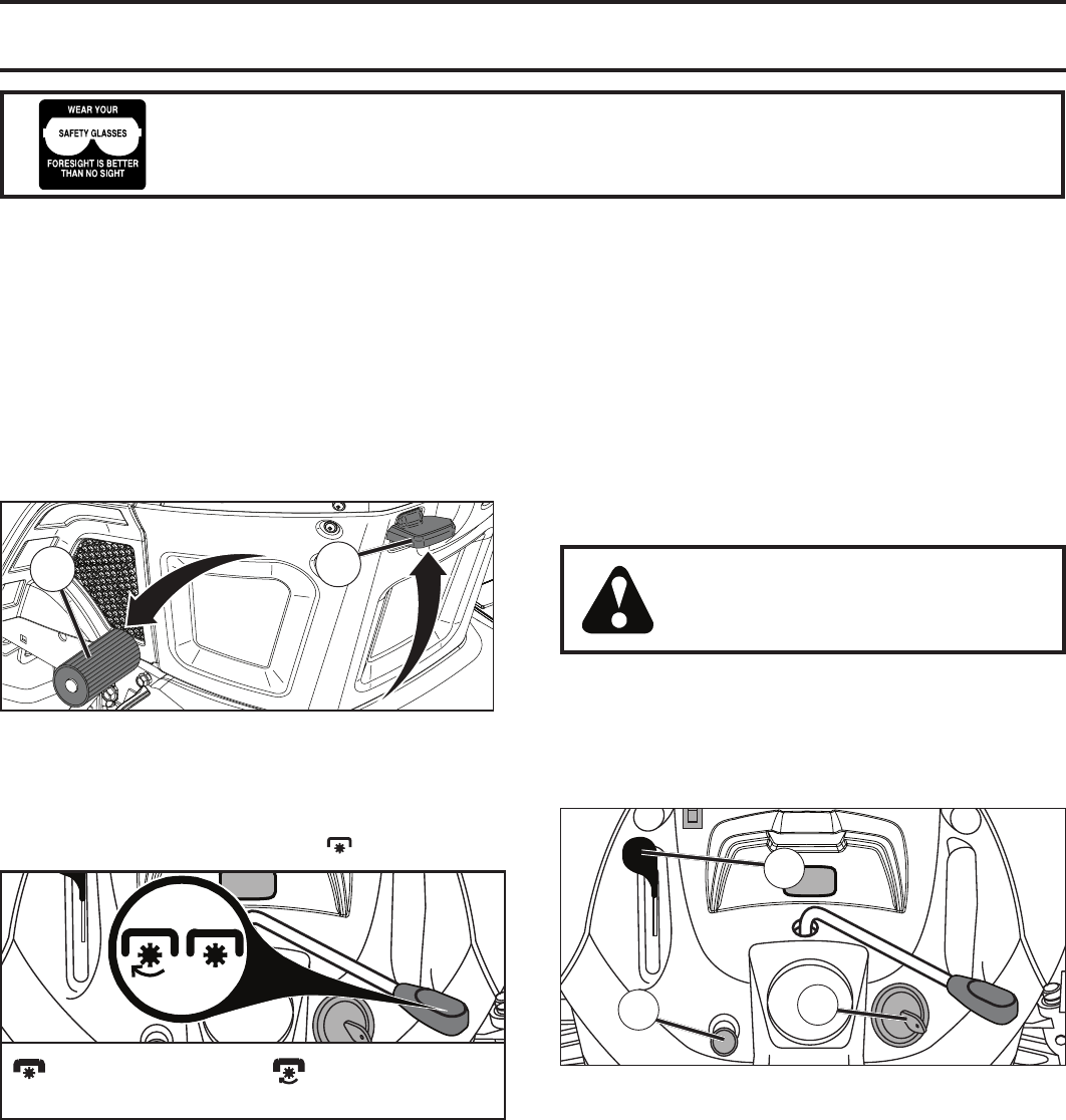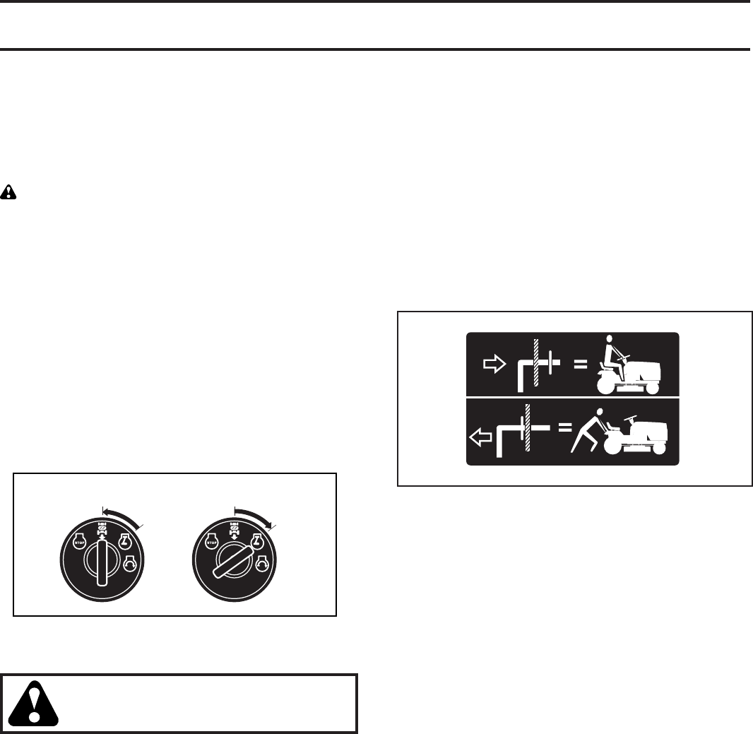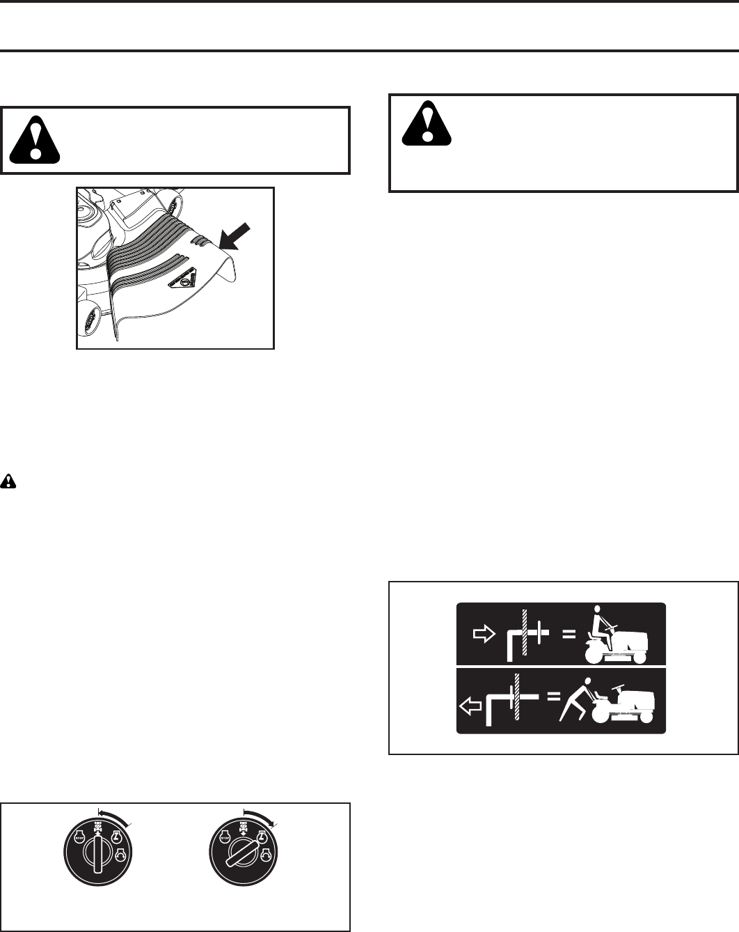 "ON", cuando enganche la segadora o otro accesorio. 1. Girar el ROS en la posición "ON".Vea la sección de