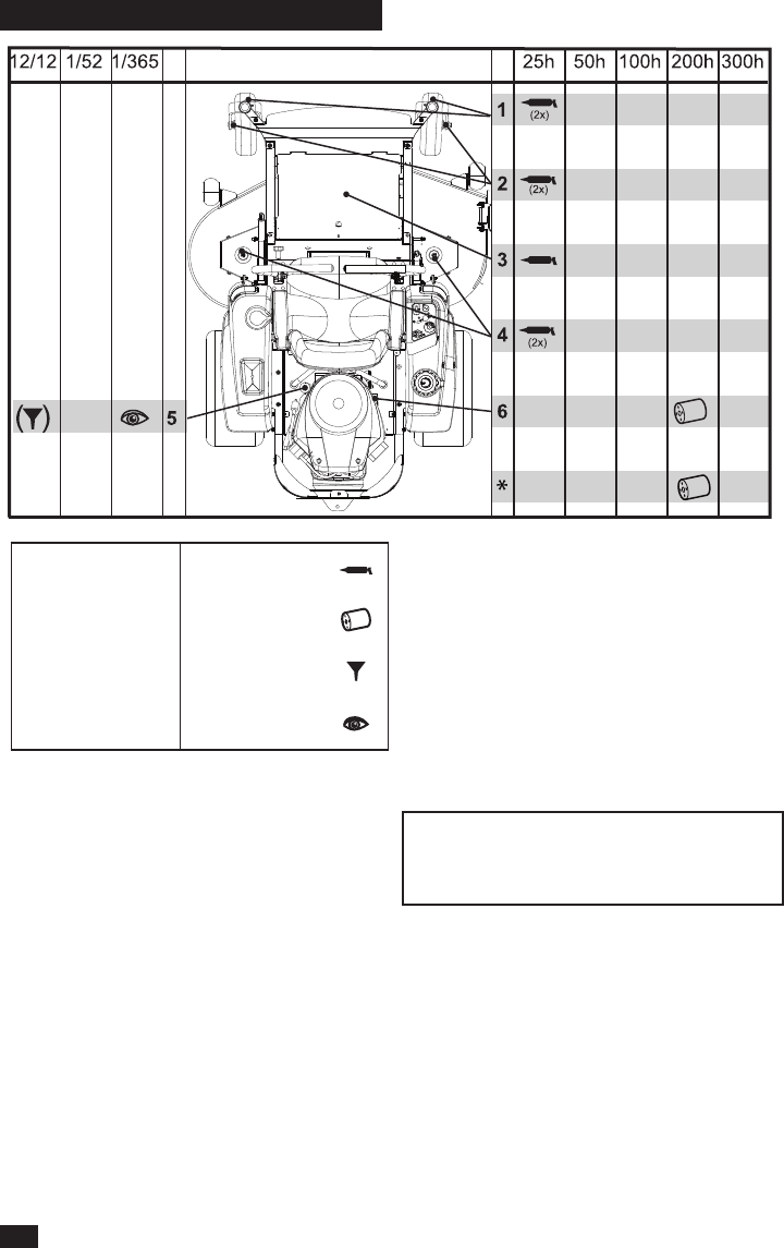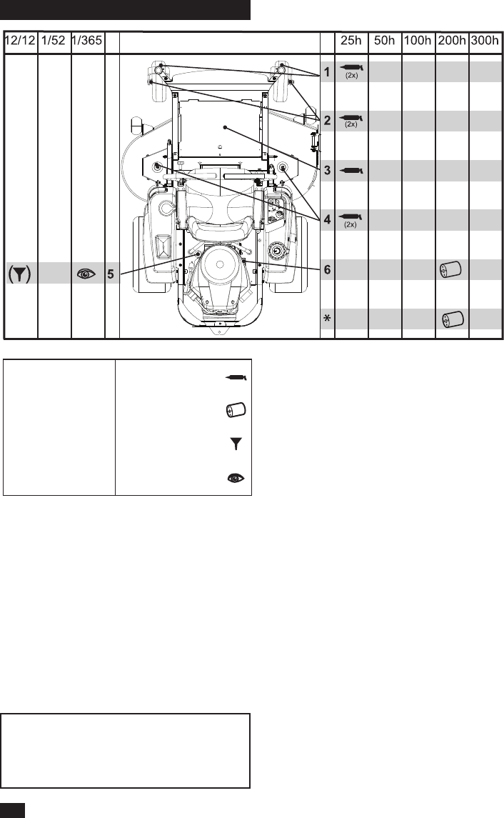 Lubricar de acuerdo con la tabla de lubricación r