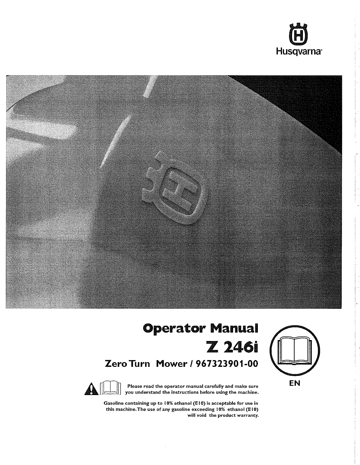 User Manual: Husqvarna 967323901-00 967323901-00 HUSQVARNA ZERO TURN MOWER - Manuals and Guides View the owners manual for your HUSQVARNA ZERO TURN MOWER #96732390100. Home:Lawn & Garden Parts:Husqvarna Parts:Husqvarna ZERO TURN MOWER Manual
