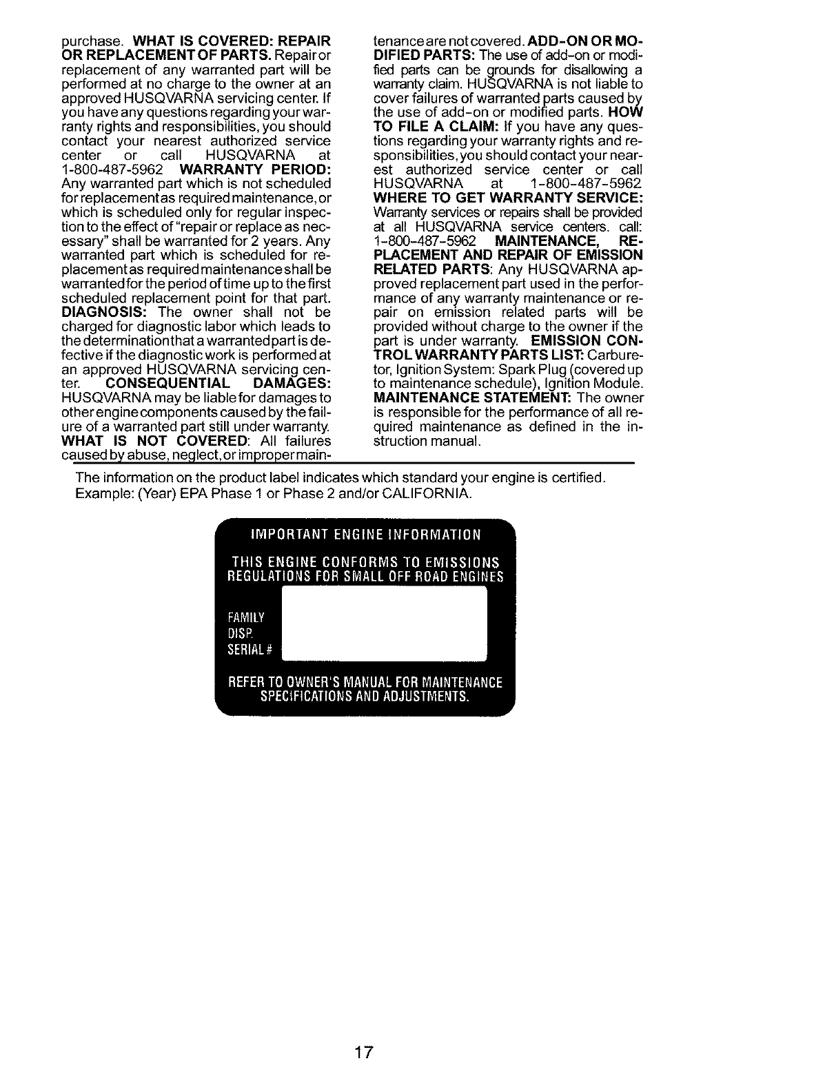 HUSQVARNA at 1-800-487-5962