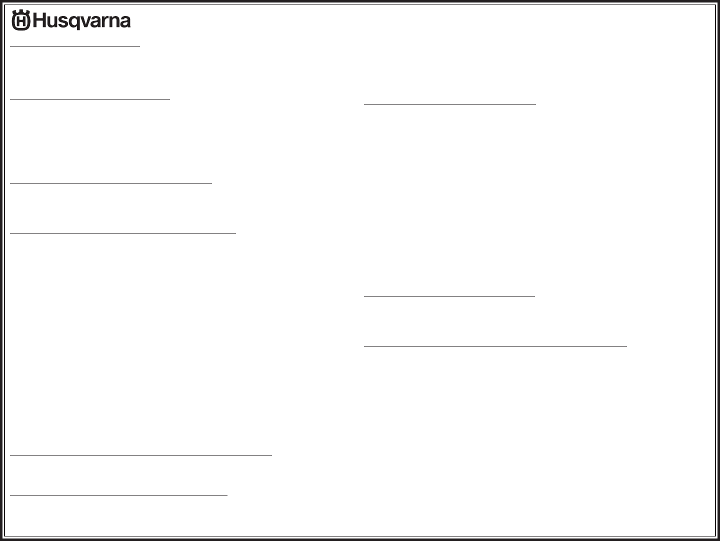 mailed to Husqvarna Forest & Garden Company. This card should be mailed within ten (10) days from the date of purchase
