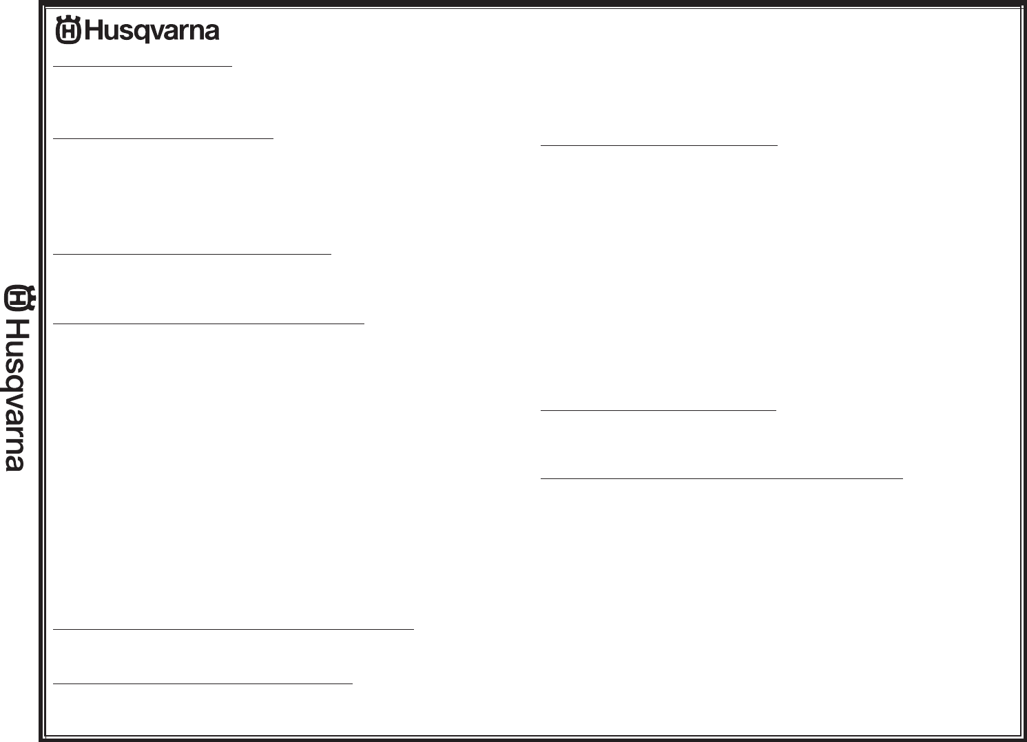mailed to Husqvarna Forest & Garden Company. This card should be mailed within ten (10) days from the date of purchase