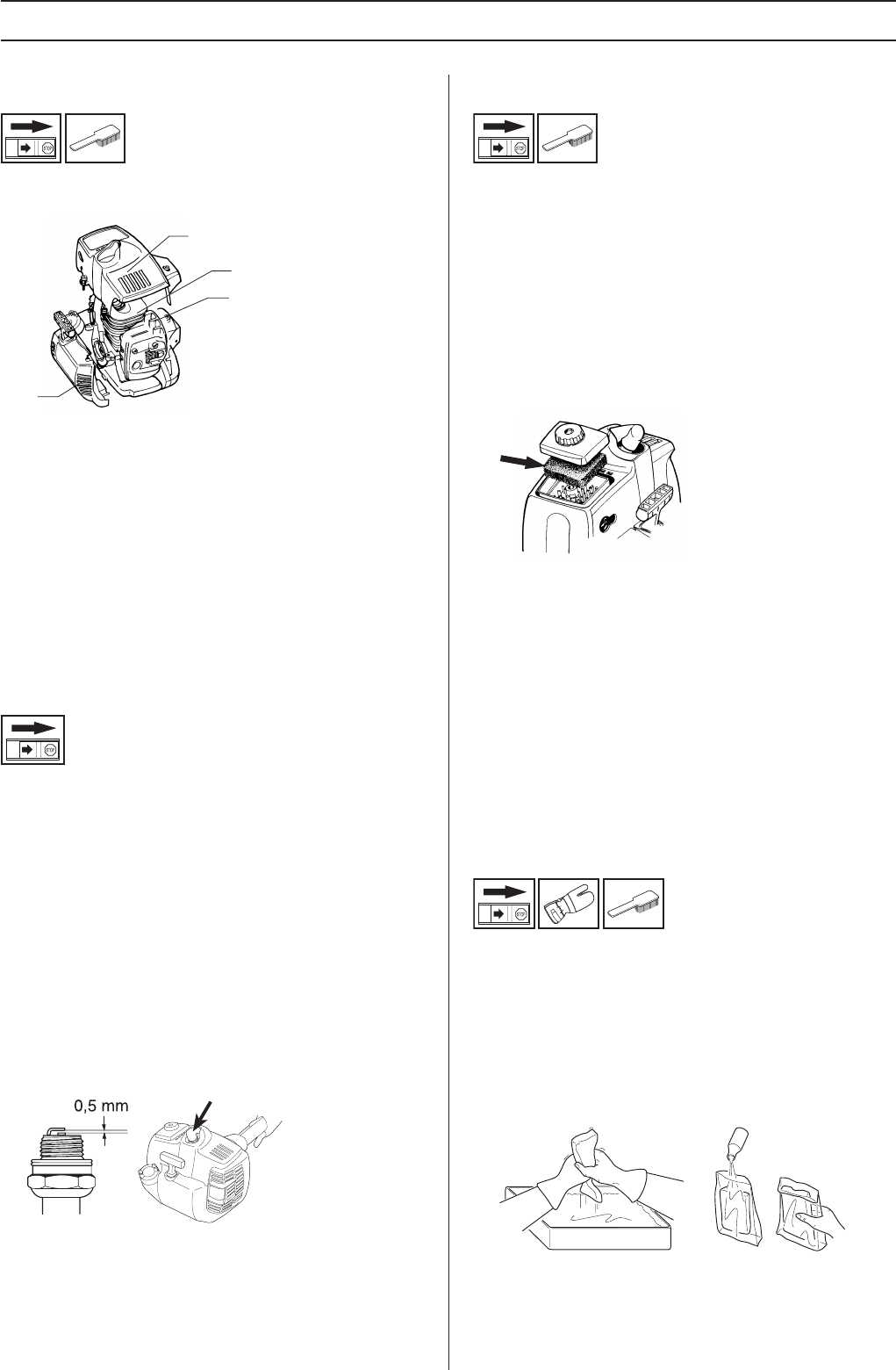 Check and clean the spark arrestor mesh on the muffler (only applies to