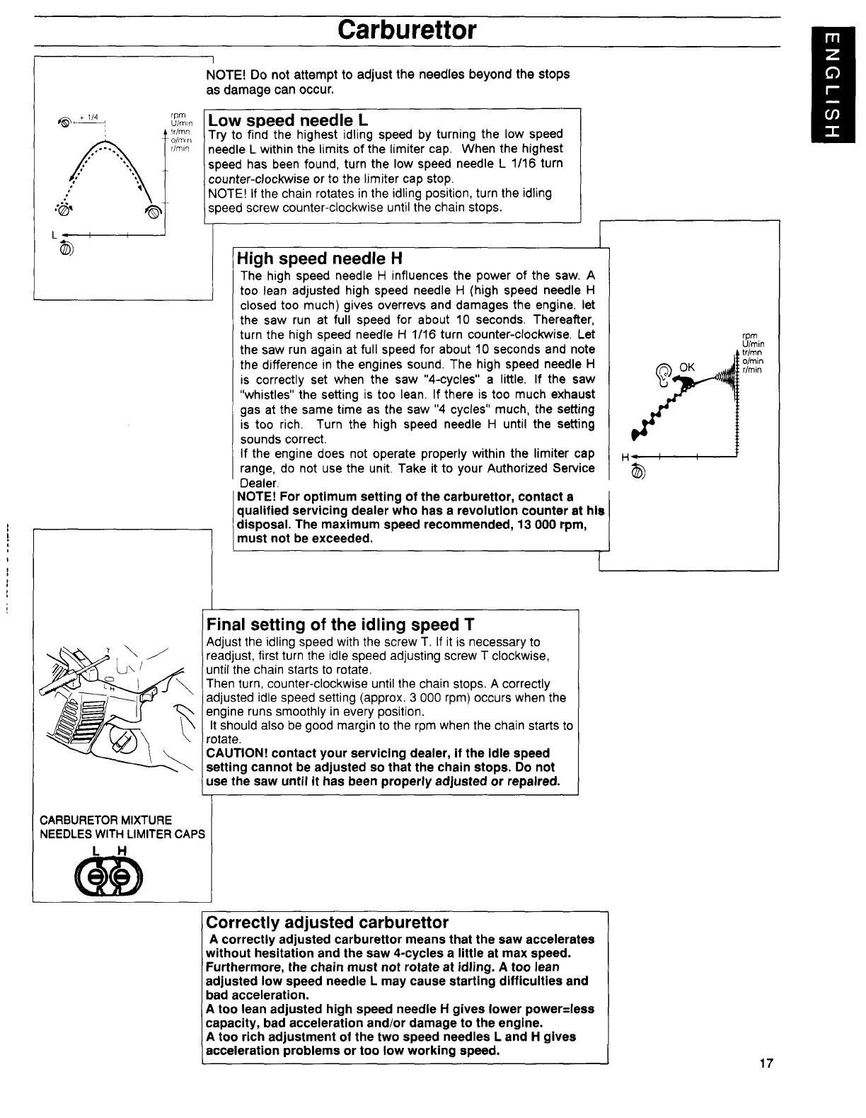 IMPORTANT! Atoo lean carburetor adjustment increases the risk of serious engine malfunction.